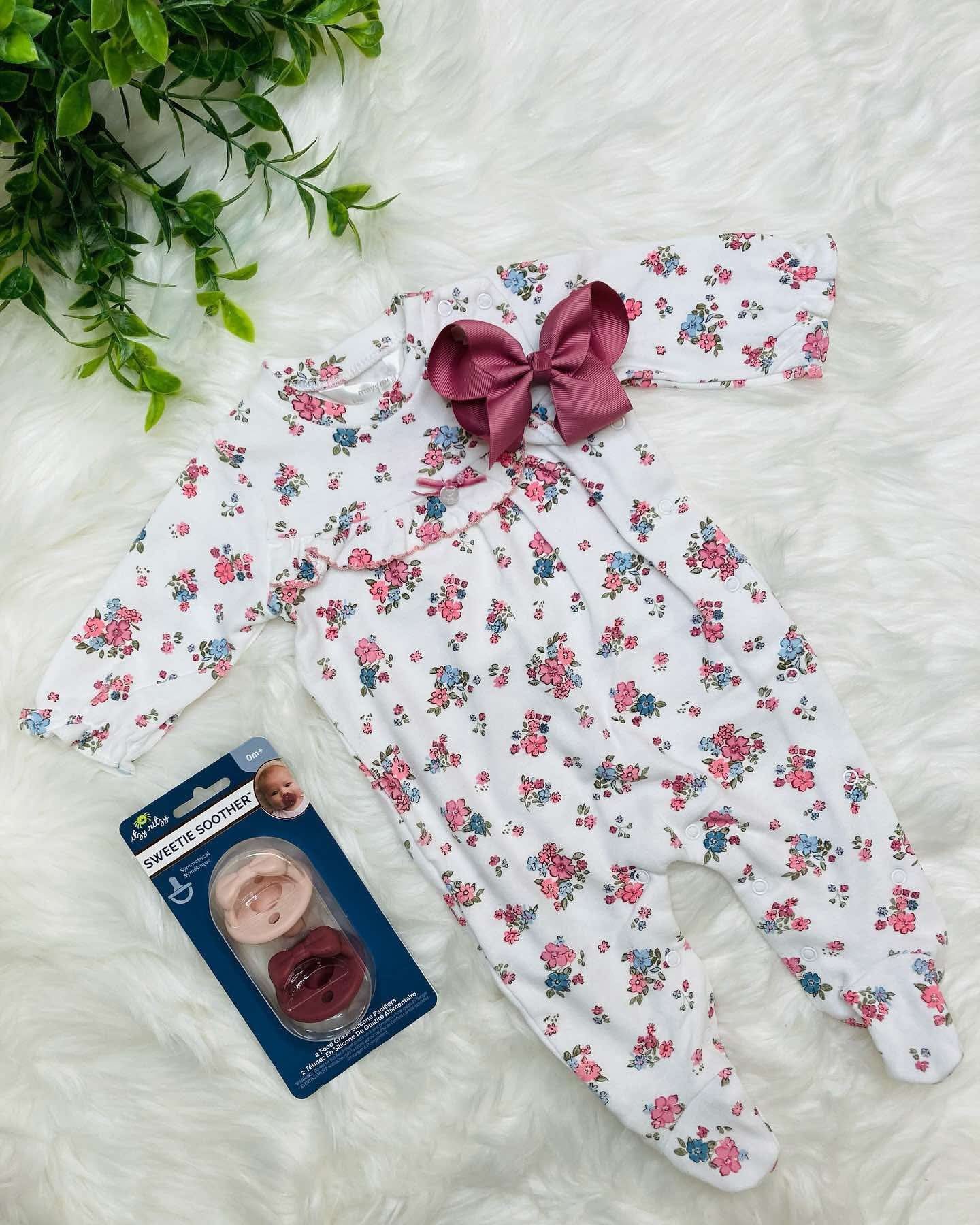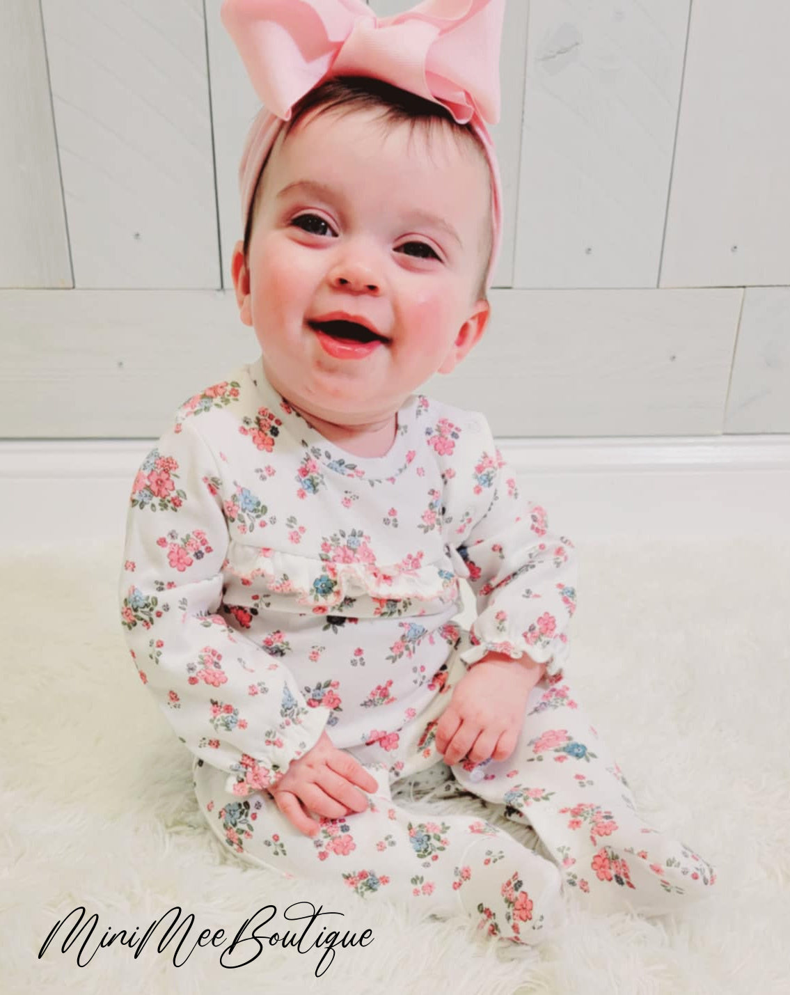 Make your little princess feel like royalty with the Mayoral Brand Floral Sleeper. This adorable footie features a soft and cozy design in pretty pink, blue, and white hues, complete with charming ruffle details. Treat your baby girl to the utmost comfort and style with this must-have sleeper!