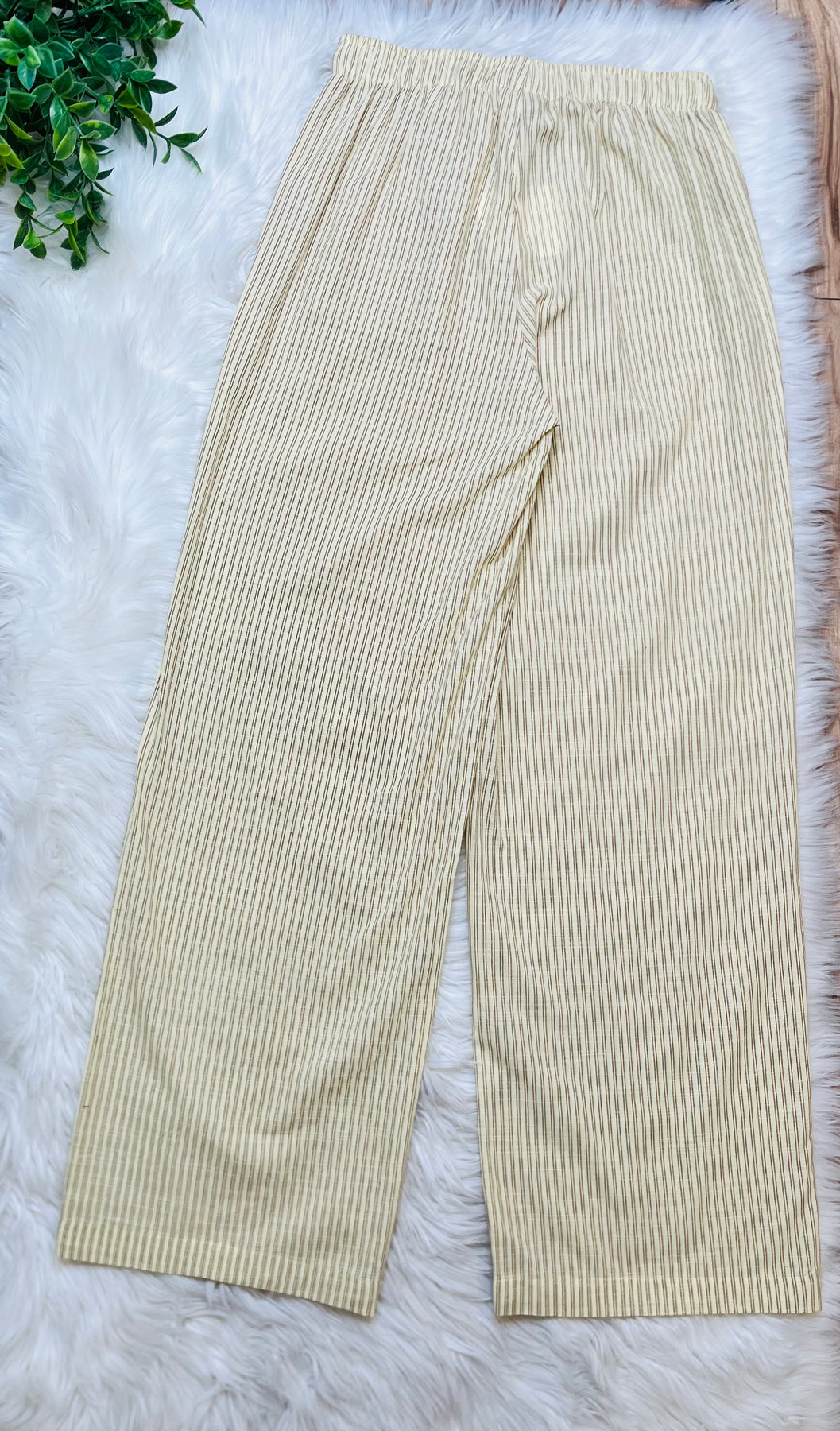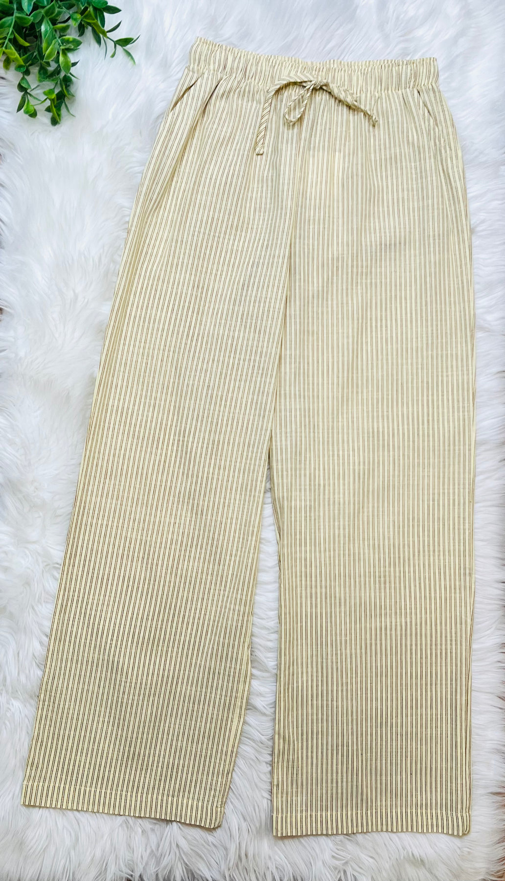 The Active Basic Yellow Elastic Waist Stripe Pants feature a streamlined design that combines comfort and functionality. The elastic waistband ensures a secure fit, allowing for unrestricted movement during various activities. The striped pattern adds a touch of style, making these pants suitable for both casual and active wear.