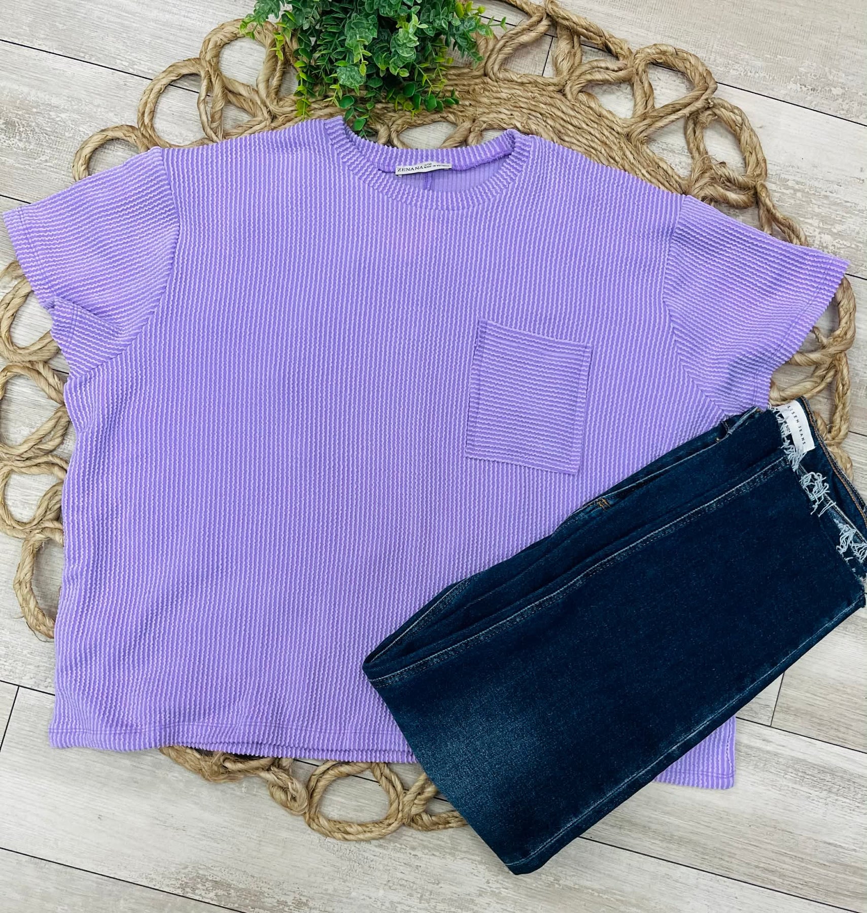 Women’s Ribbed Cozy Fit Pocket Top Lavender