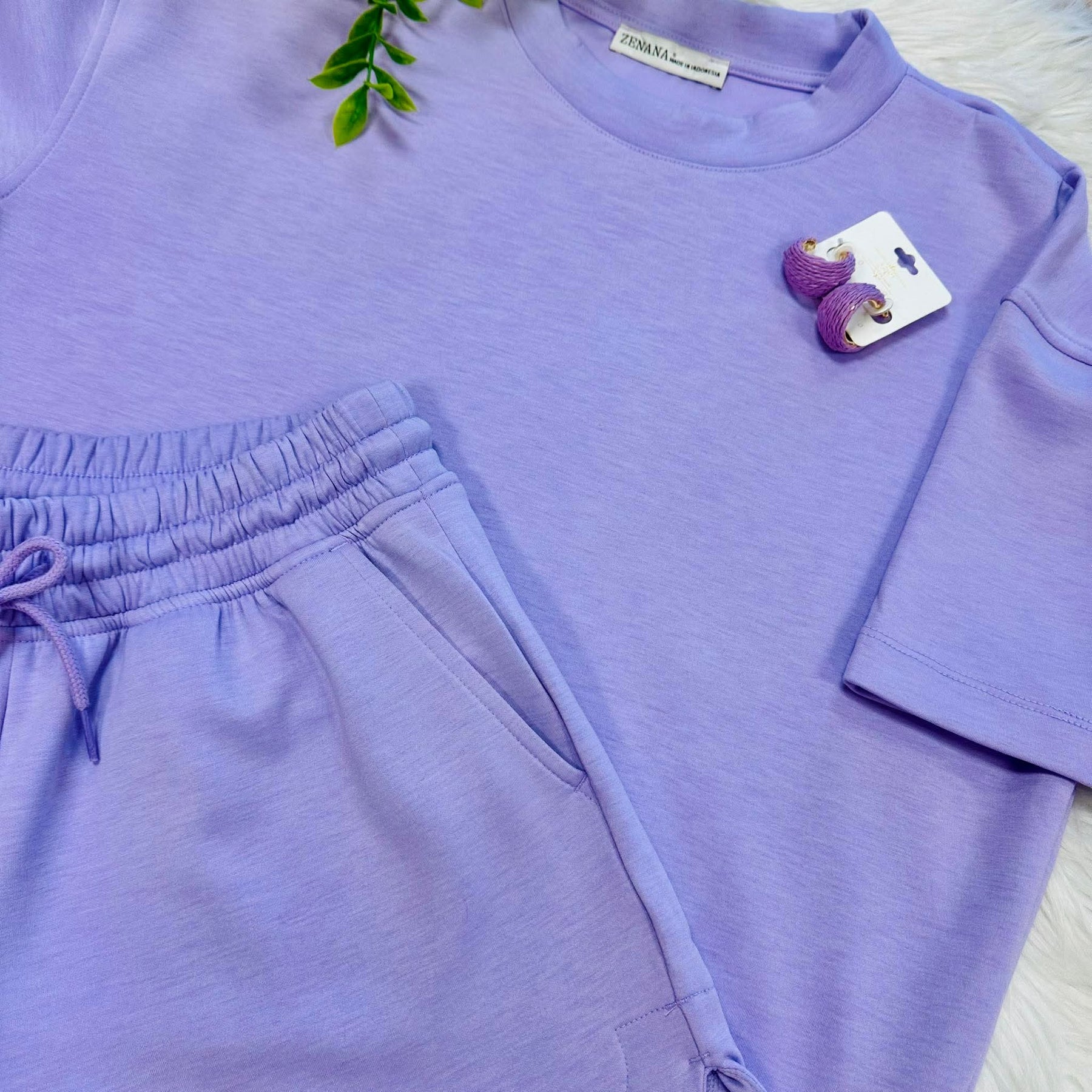 The Women’s Scuba Mock Neck Drawstring Short Set is designed for comfort and versatility. This set, featuring a mock neck and adjustable drawstring shorts, provides a tailored fit. The breathable fabric composition allows for ease of movement, making it suitable for various activities or casual outings.