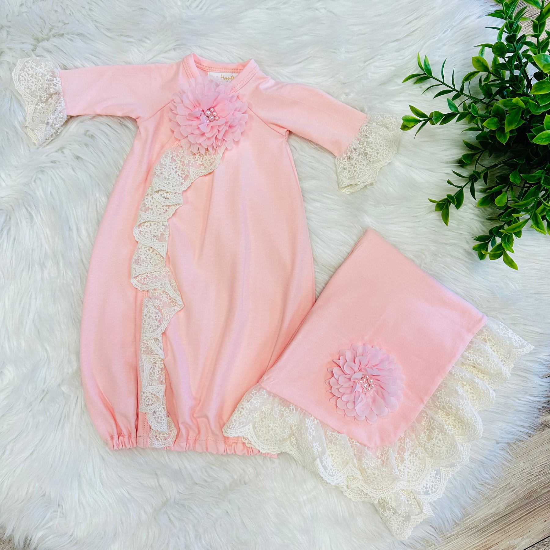 The Girls Light Pink Haute Baby Gown and Blanket Set encompasses a soft, gentle fabric designed for newborn comfort. The gown allows for easy dressing and diaper changes, while the accompanying blanket provides warmth and security. This set is ideal for enhancing a soothing environment for infants, promoting restful sleep.