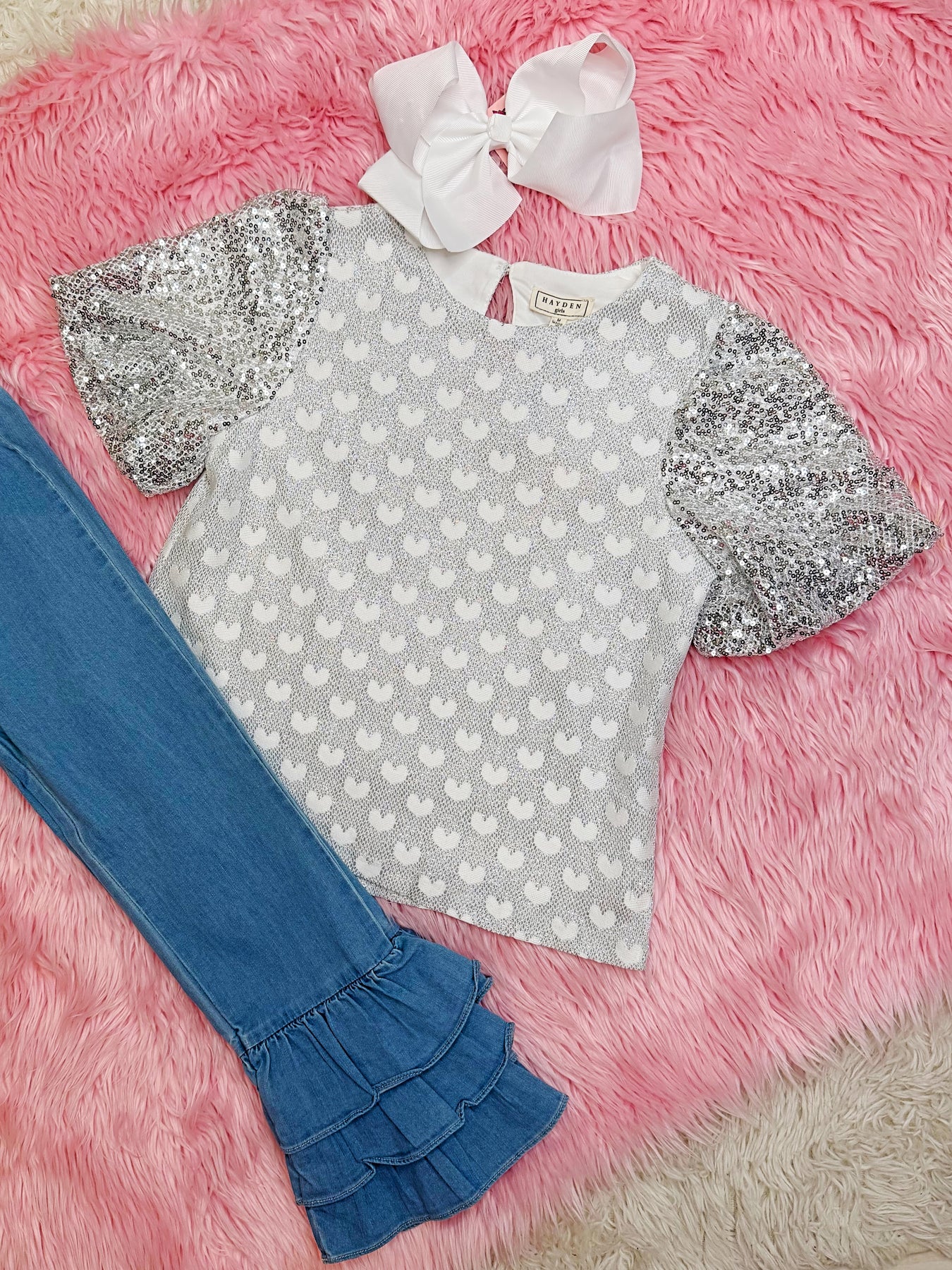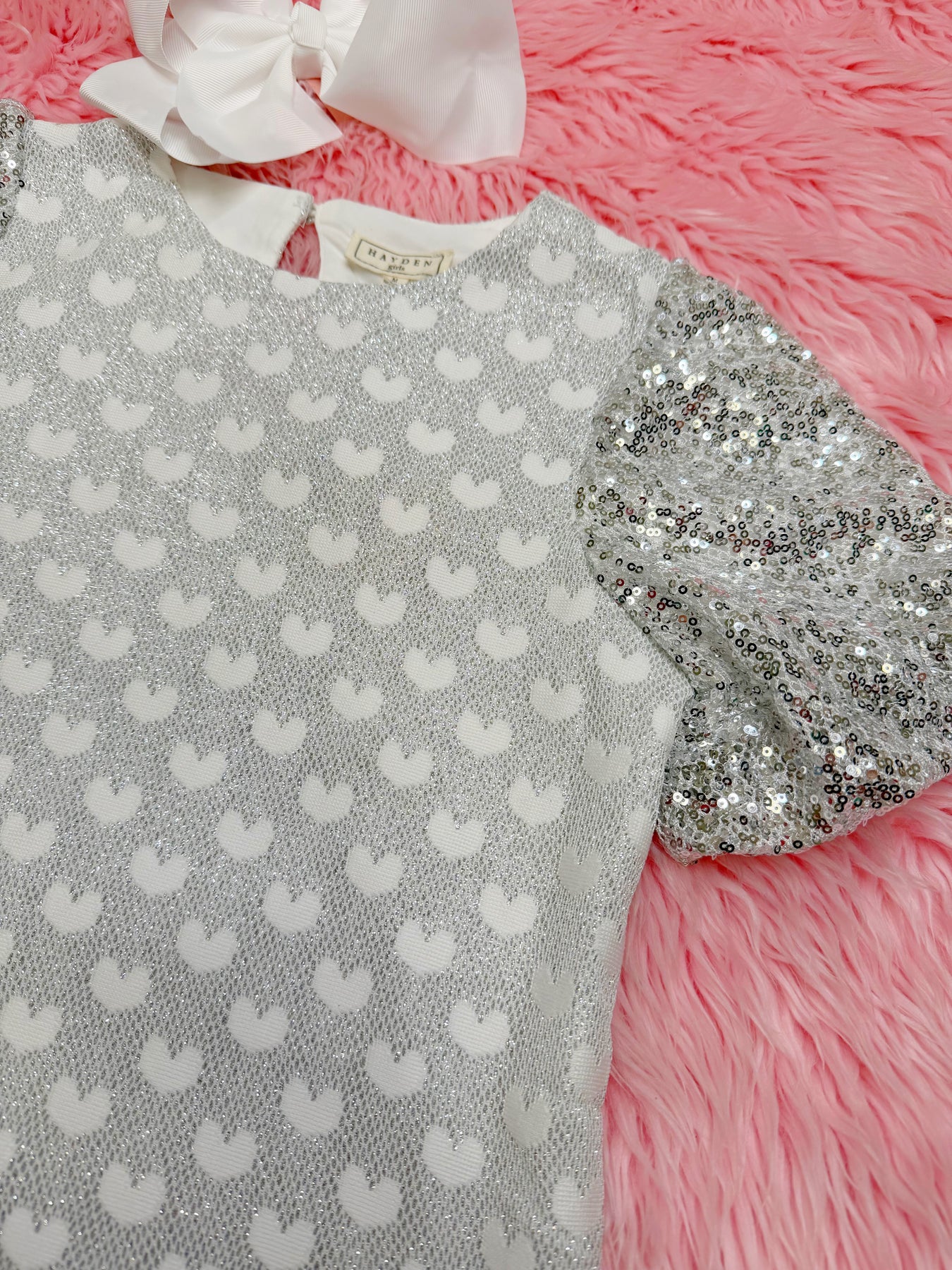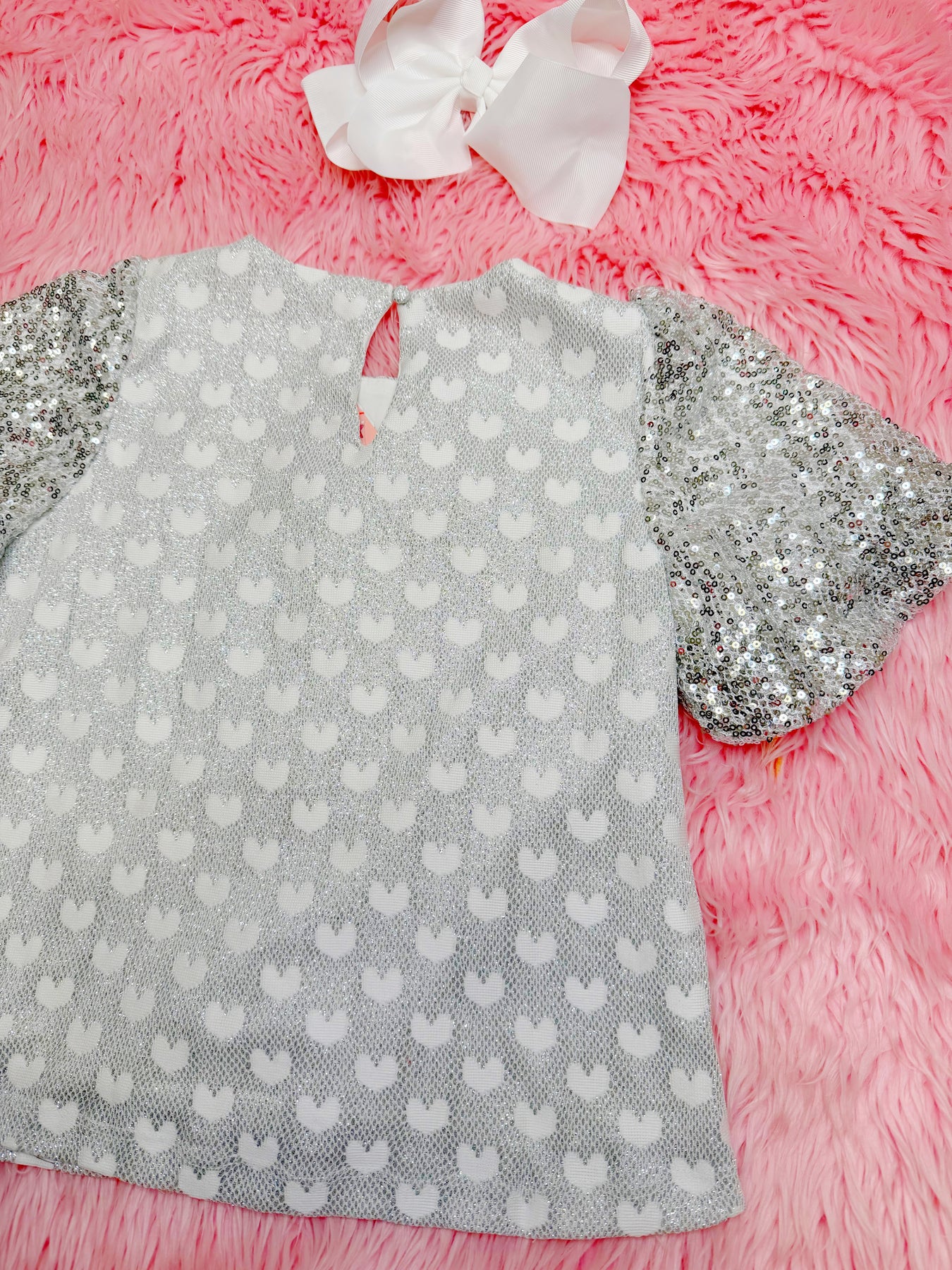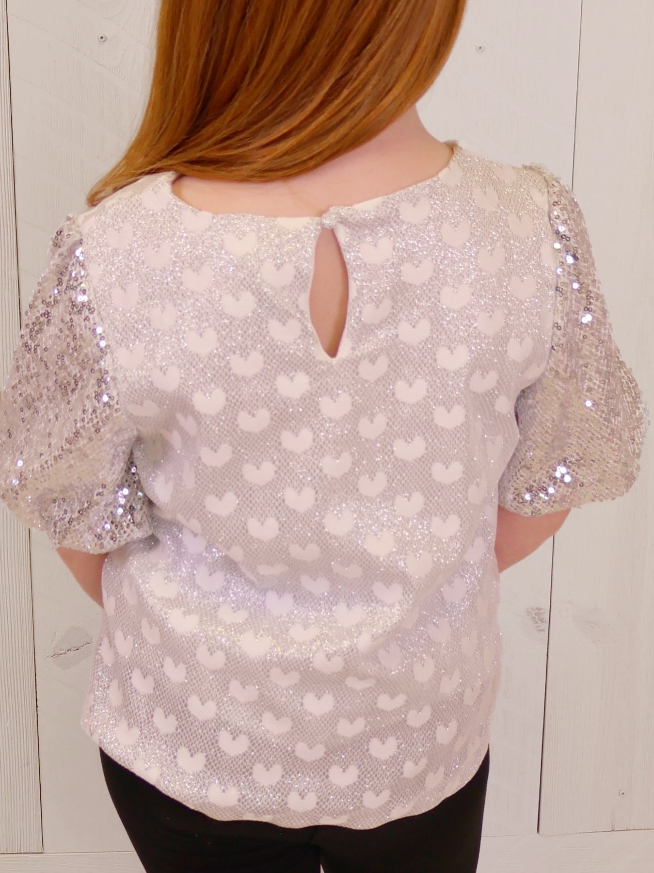 Get ready to add a touch of sparkle to your little girl's wardrobe with this charming Silver Sequin Sleeved Top! With its sparkling design and stylish sleeves, this top is sure to make her shine wherever she goes.