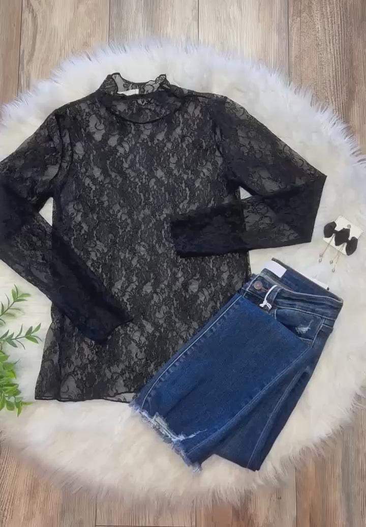 Women’s Black Floral Lace Long Sleeve Layering Top