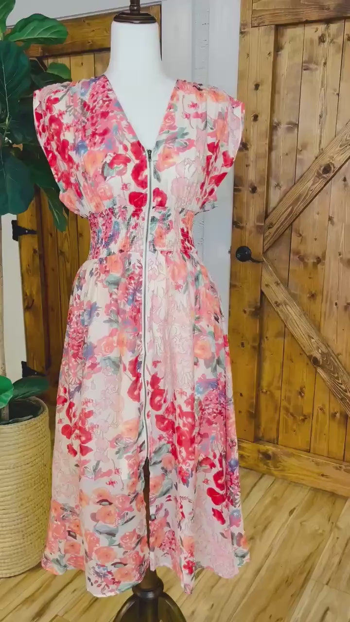 The Women's GiGiO Floral Smocked Waist Zip Up Dress combines functionality with elegance. The smocked waist provides a tailored fit, enhancing the silhouette, while the zip-up feature allows for easy wear. Crafted with floral patterns, this dress is suitable for a variety of occasions, offering both comfort and style.