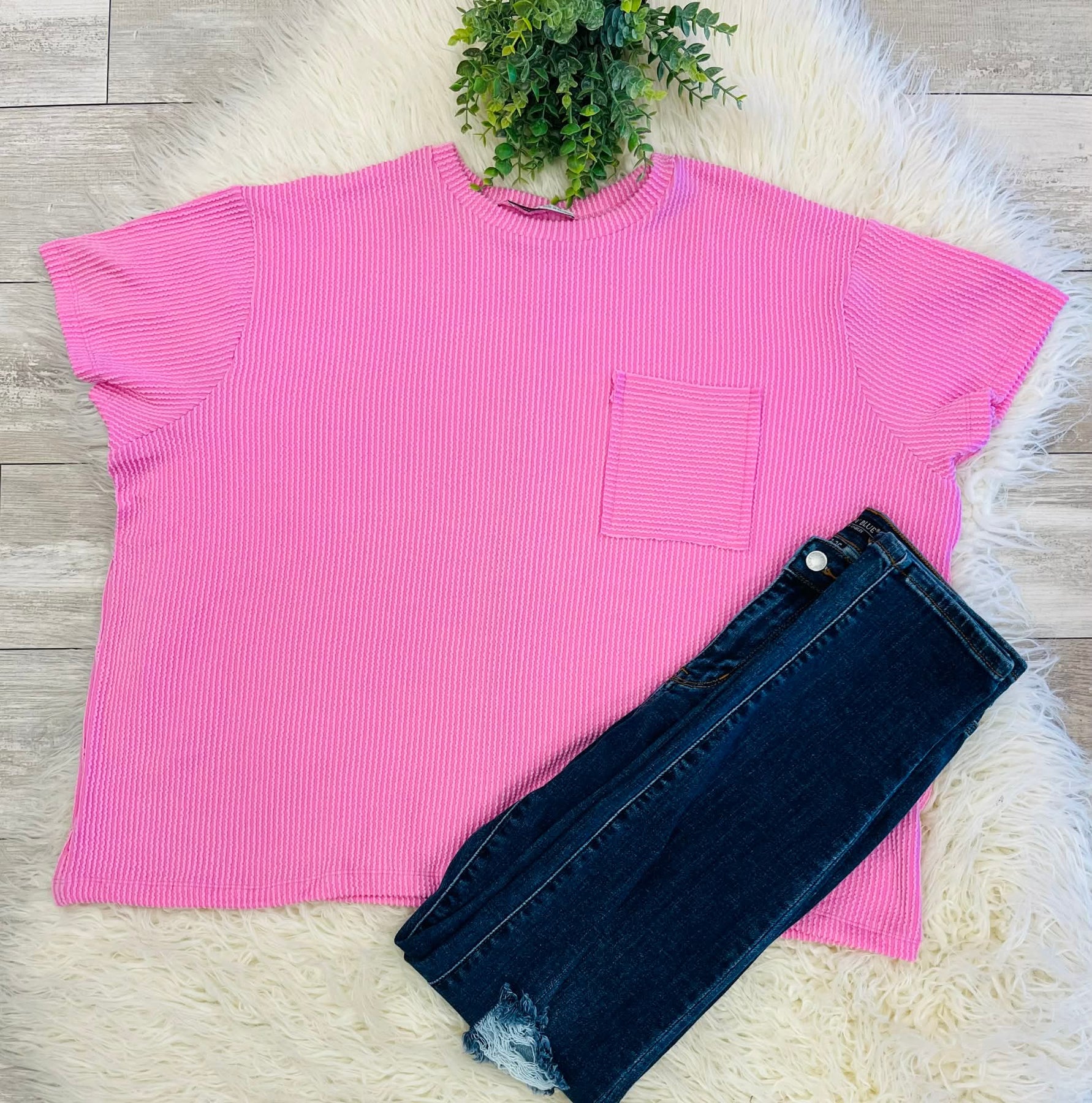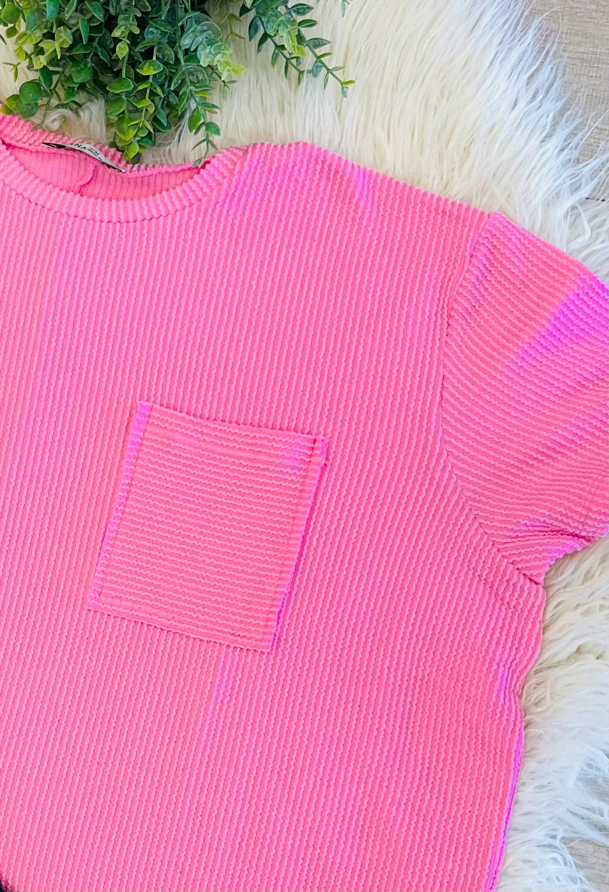 Women’s Ribbed Basic Cozy Fit Pocket Top in Pastel Pink