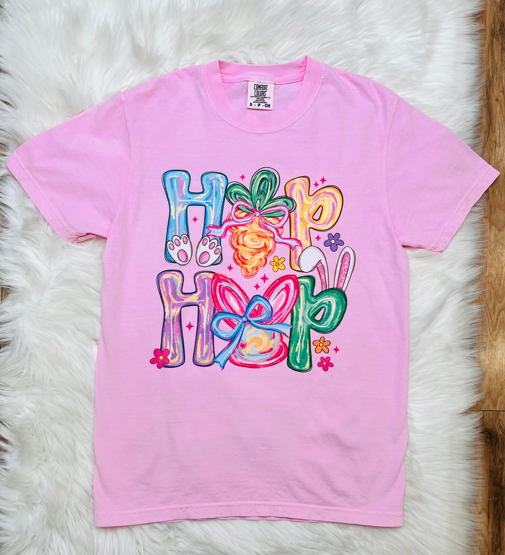 The Women’s “Hop” Pink Graphic Tee features a distinctive Easter design, utilizing high-quality materials for enhanced comfort and durability. Ideal for seasonal wear, this tee offers a relaxed fit that facilitates ease of movement, making it suitable for casual outings and festive gatherings.