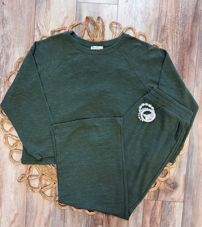 Zenana Curvy Slub Long Sleeve Lounge Set Dark Green