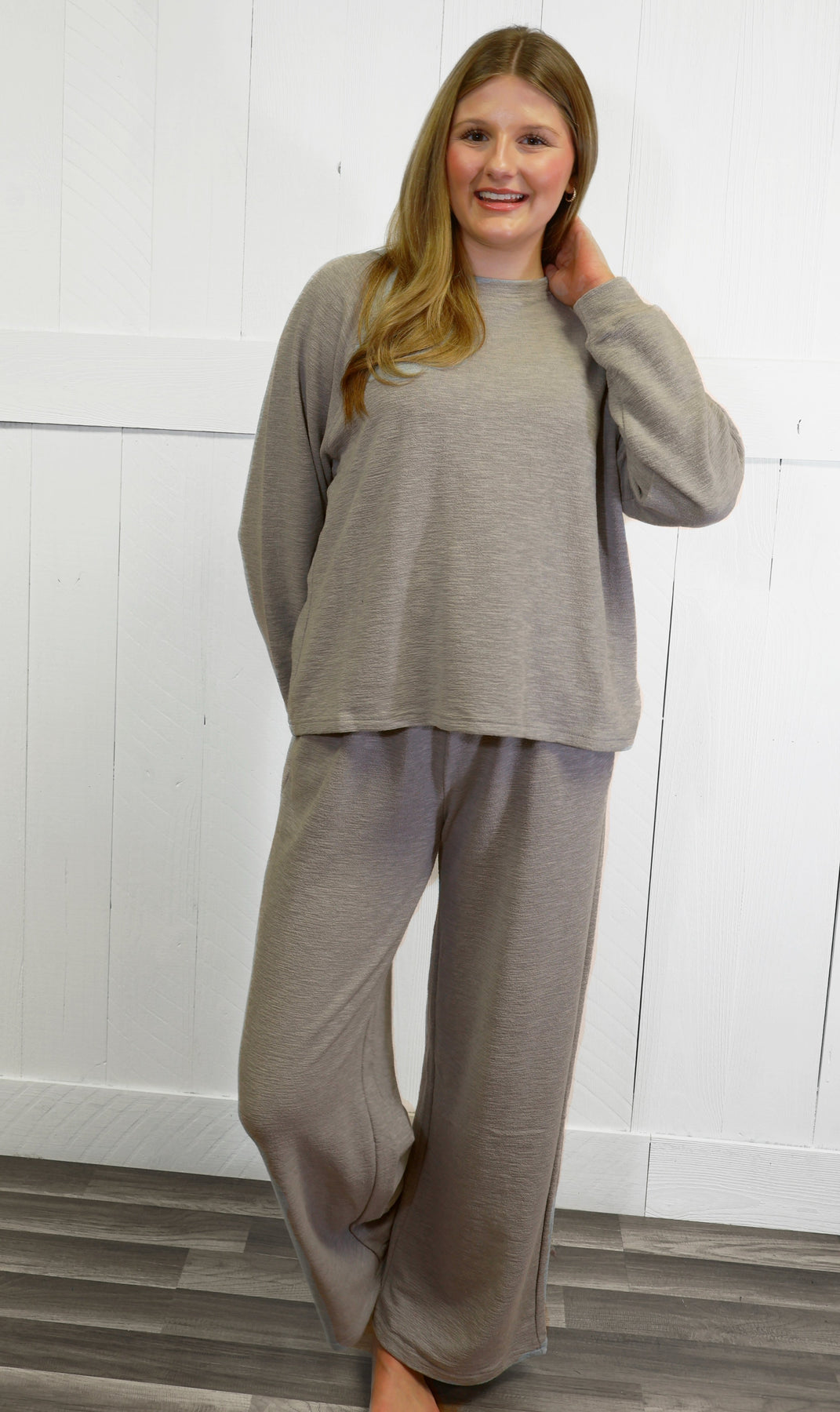 Zenana Curvy Slub Long Sleeve Lounge Set Color Coco