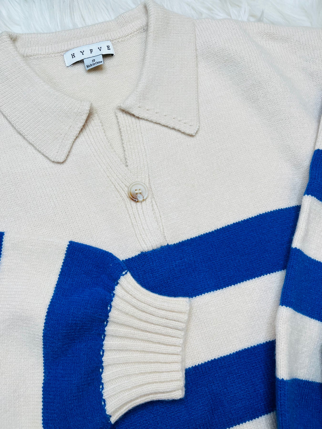 Expertly crafted with a bold cobalt blue color, this womens striped sweater adds a pop of vibrant style to any wardrobe. Made from high-quality materials, it offers both comfort and durability. Elevate your look with this statement piece.