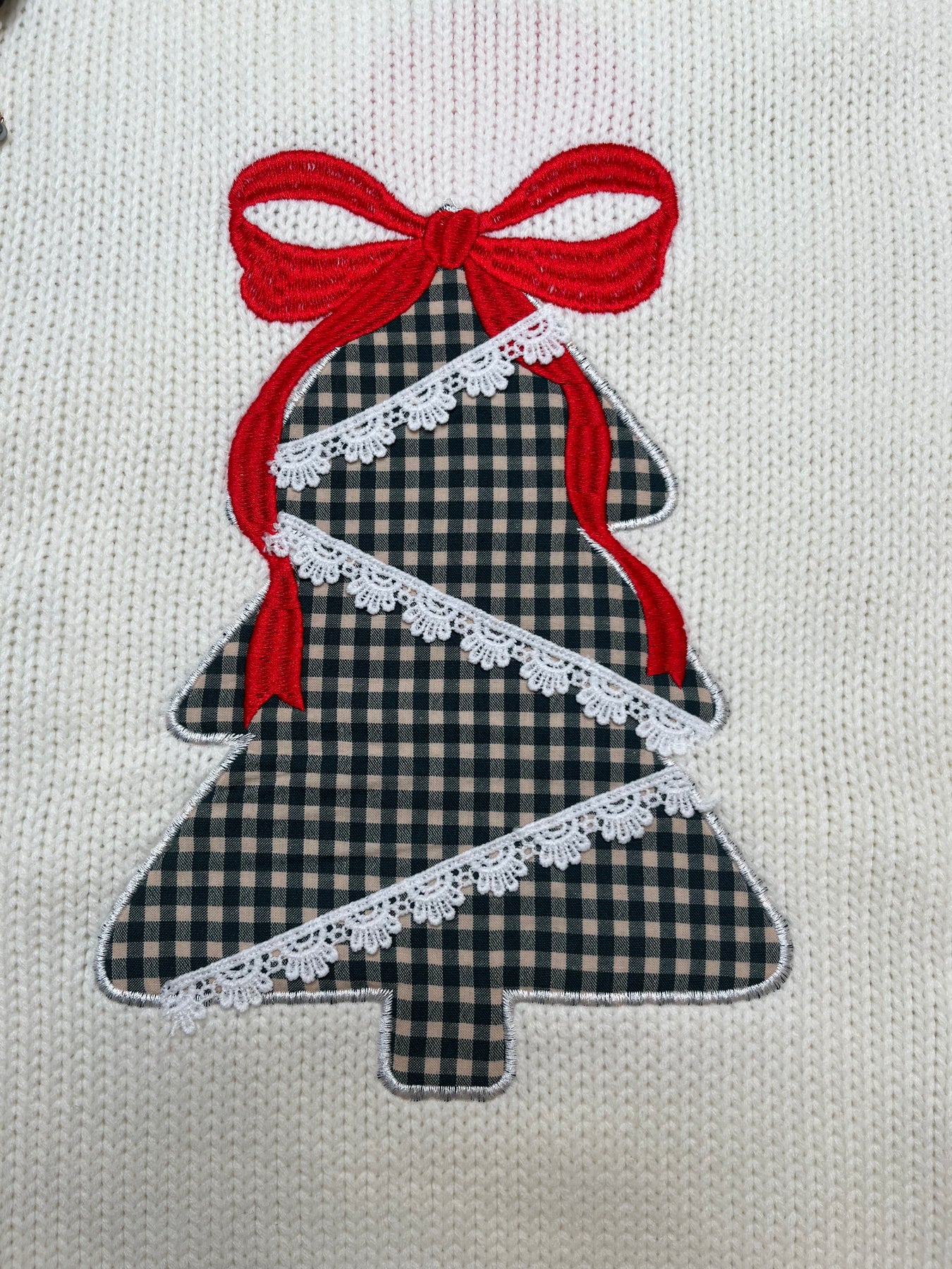 Stay warm and stylish this holiday season with our Womens White Christmas Tree Patchwork Sweater. Made with a festive design, this sweater is perfect for spreading holiday cheer. With its unique patchwork detailing, you'll be sure to stand out at any holiday party.