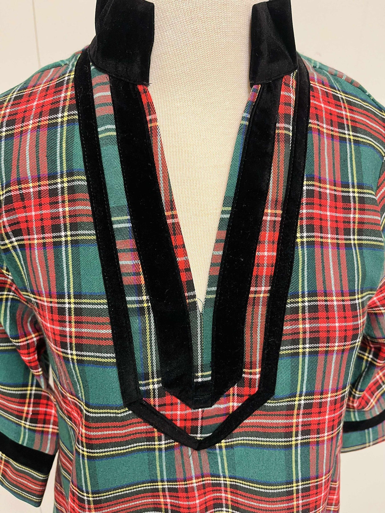 This women's red plaid velvet trim dress is a fashionable choice for any occasion. Made with a soft velvet trim, this dress offers both comfort and style. Its classic plaid pattern adds a touch of sophistication, making it perfect for work or a night out.