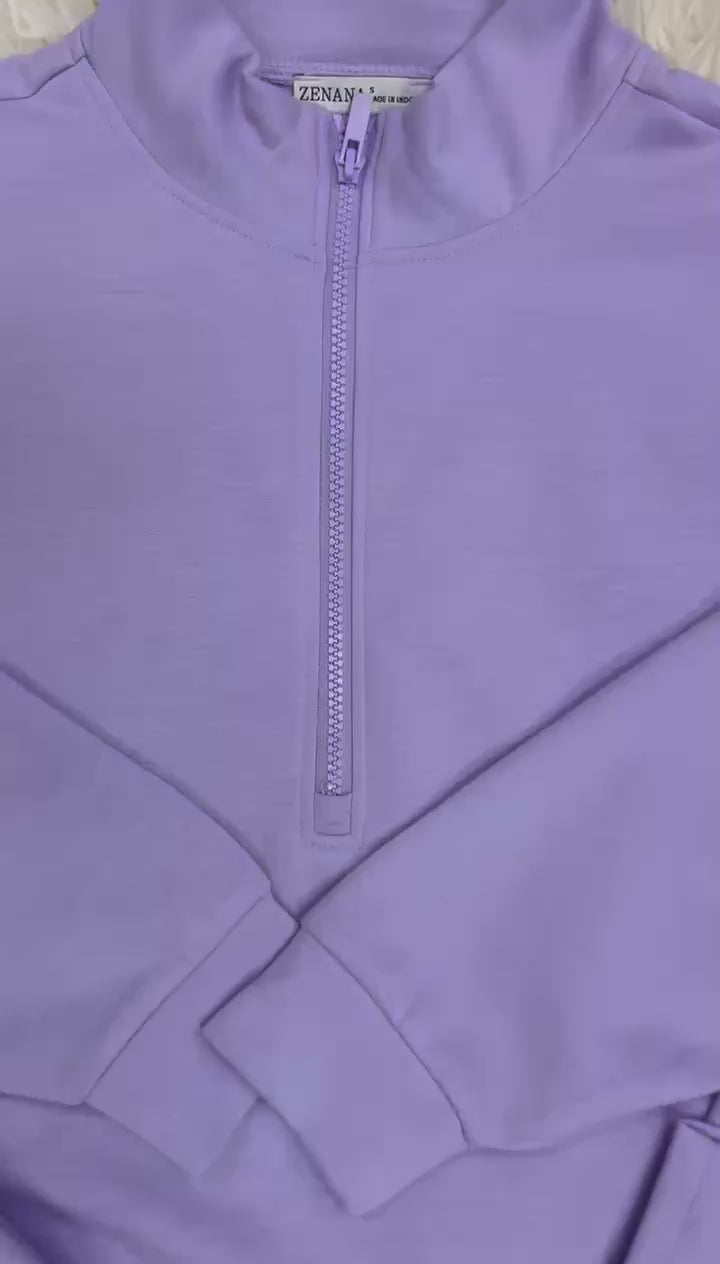 The Women’s Lilac Quarter Zip Scuba Jogger Set is designed for comfort and style, featuring a coordinated set that enhances versatility. The quarter zip allows for adjustable ventilation, promoting breathability during physical activities. This set is suitable for casual outings or workouts, offering a balance of functionality and aesthetic appeal.