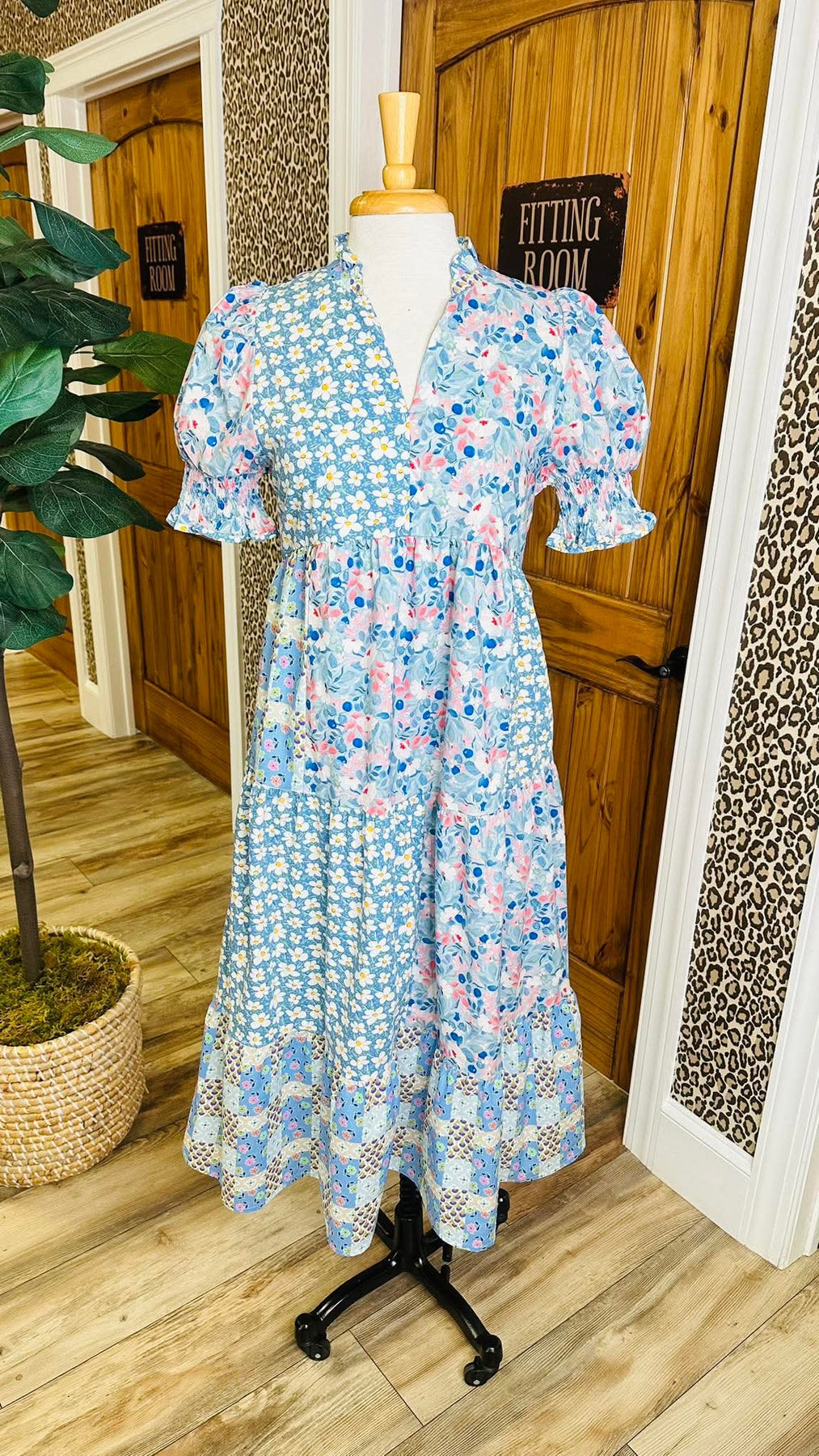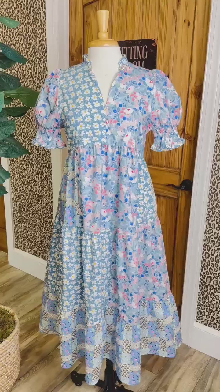 The Women’s Blue Mixed Floral Print Puff Sleeve Midi Dress combines a sophisticated design with practical comfort. The puff sleeves provide structural detail, while the midi length allows for versatile styling. Crafted from breathable fabric, this dress is ideal for various occasions, ensuring both ease of movement and a polished appearance.