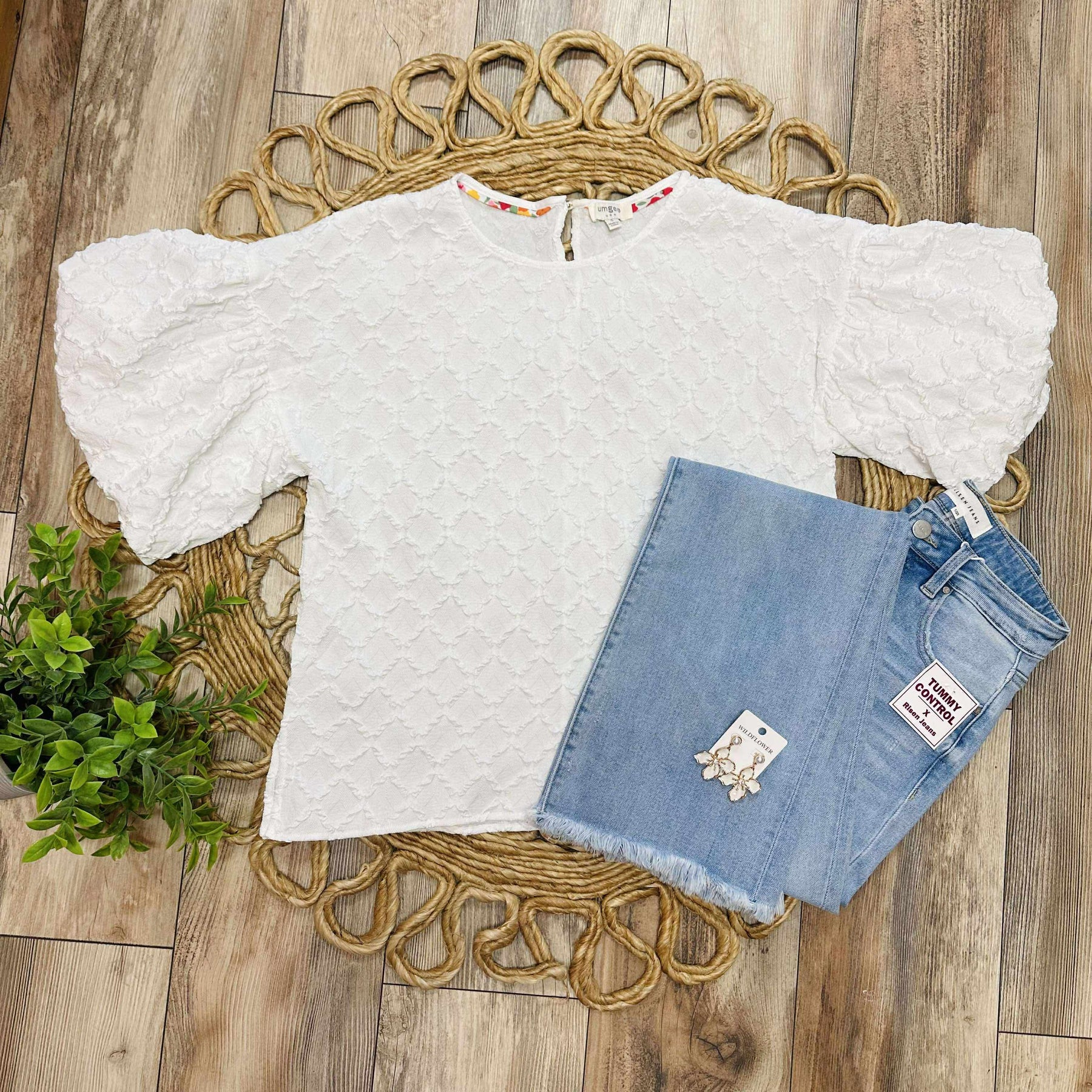 The Women’s Cream Puff Sleeve Textured Top features a unique textured fabric, designed to enhance breathability and comfort. The puff sleeves provide a structured yet relaxed silhouette, promoting ease of movement. Ideal for layering or standalone wear, this top offers versatility for various occasions.