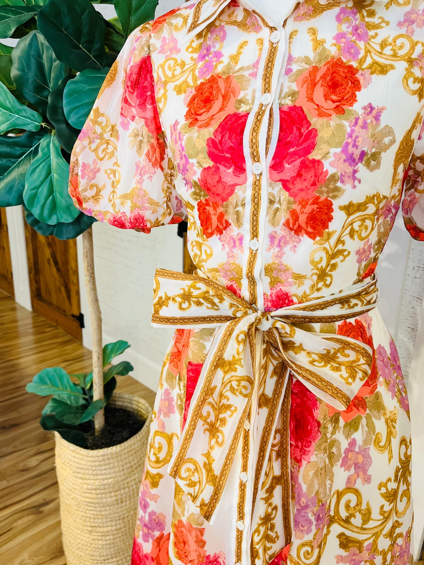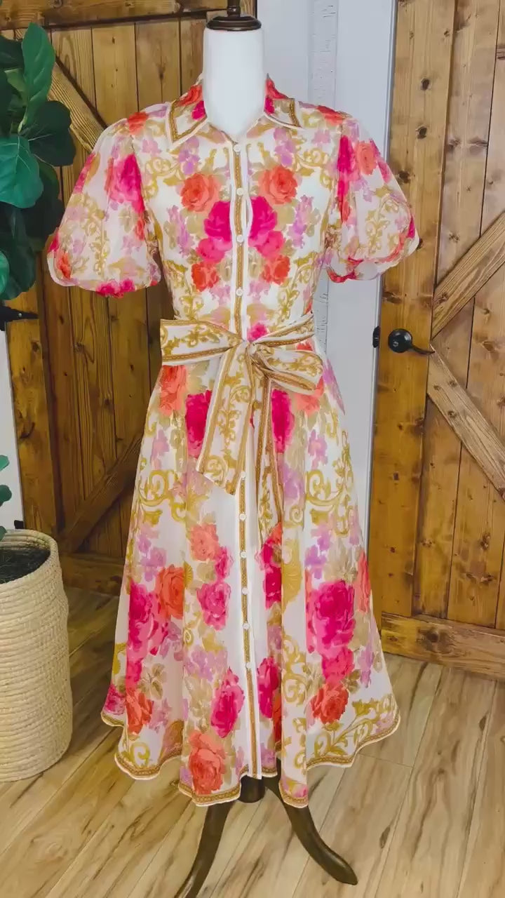 The Women’s Flying Tomato Floral Belted Maxi Dress features an elegant floral design and structured puff sleeves, promoting breathability and comfort. The belted waist enhances the silhouette, providing a flattering fit for various body types. This versatile dress is ideal for both casual outings and formal occasions.