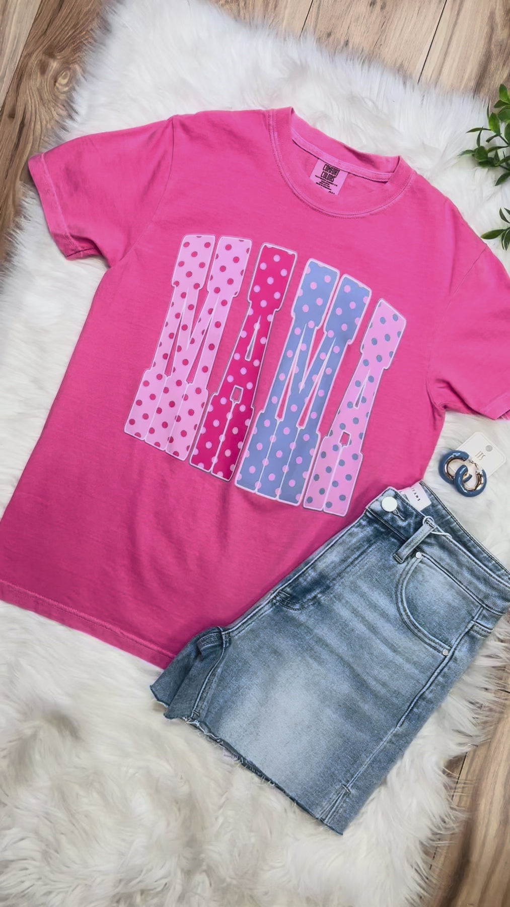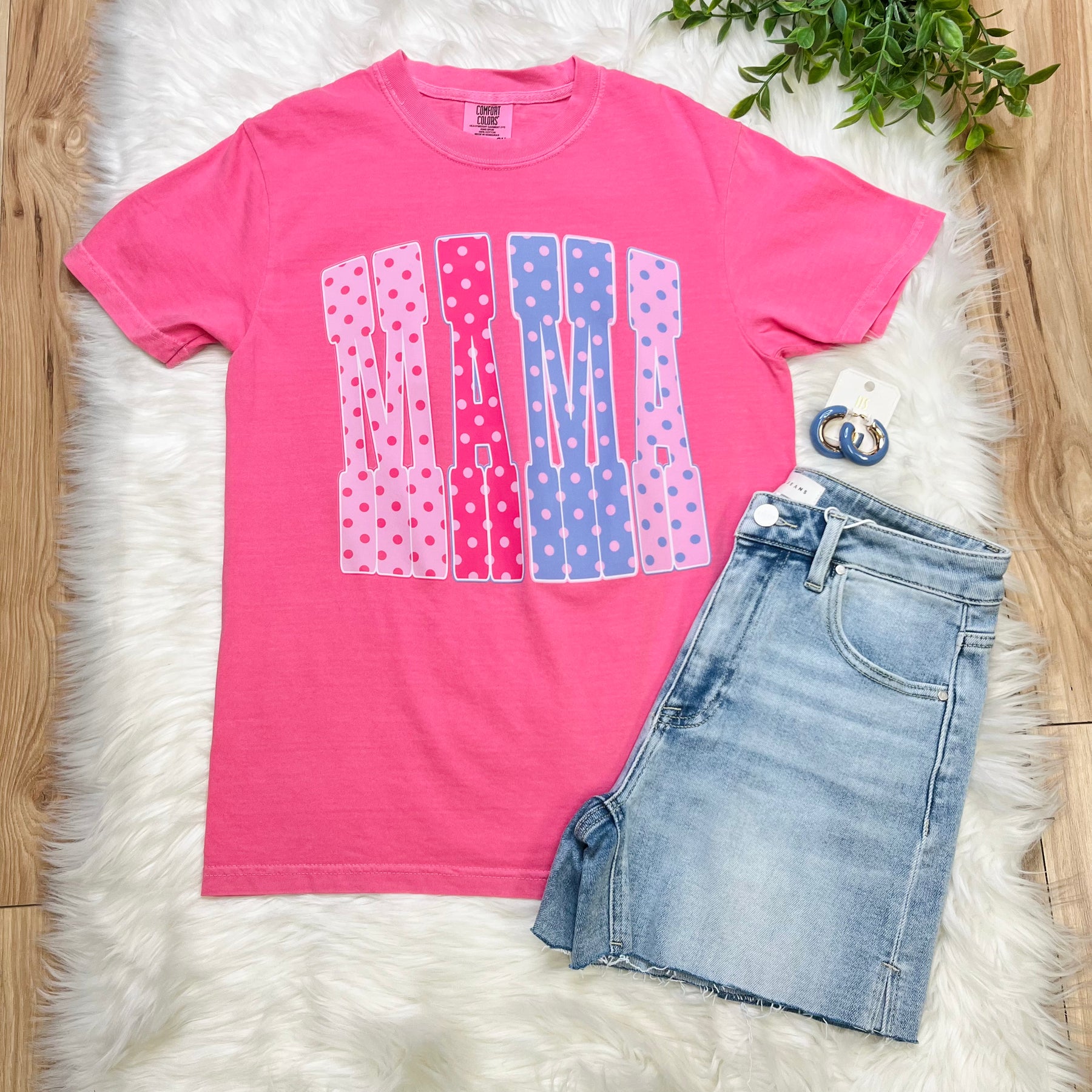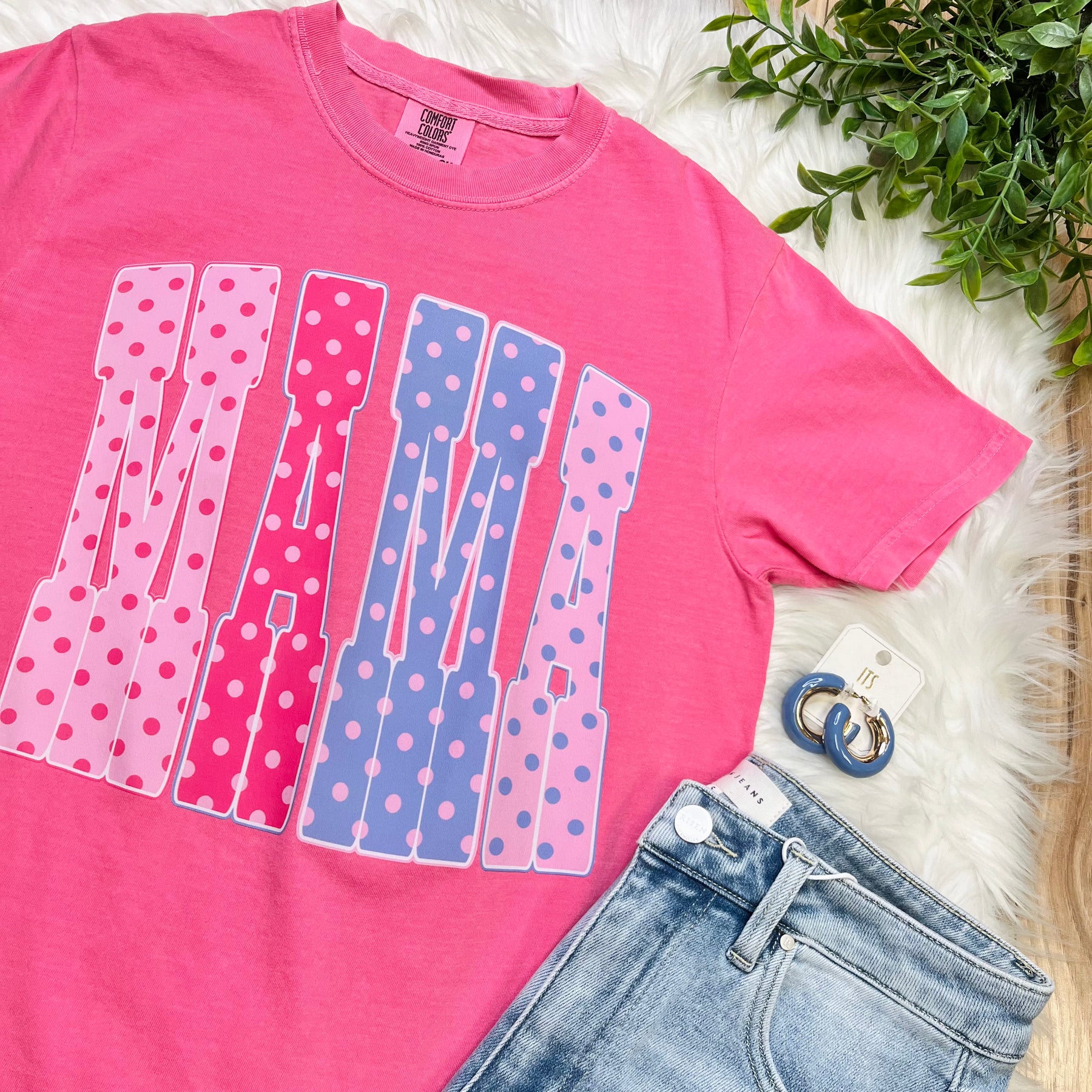 The Women’s Pink Polka Dot MAMA Graphic Tee combines style and comfort, featuring a playful polka dot design. This cotton-blend fabric ensures breathability and durability, making it suitable for everyday wear. The graphic adds a contemporary touch, appealing to modern mothers who appreciate both fashion and function.