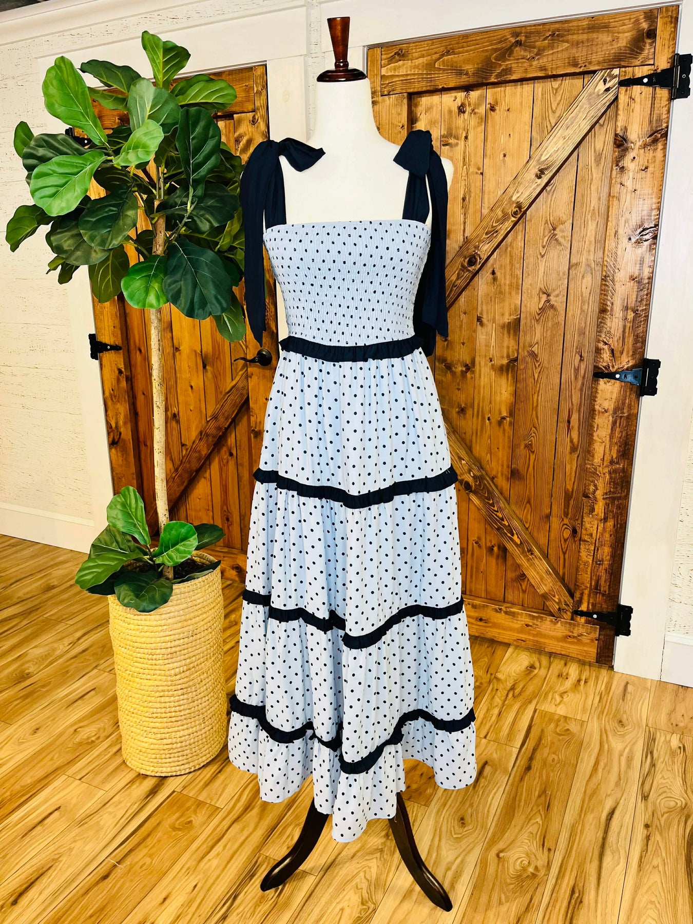The Women’s Peach Love Shoulder Tie Polka Dot Dress features a lightweight fabric designed for comfort and breathability. The shoulder tie design allows for adjustable fit, enhancing versatility for various body types. The polka dot pattern offers a timeless aesthetic, suitable for both casual and semi-formal occasions.