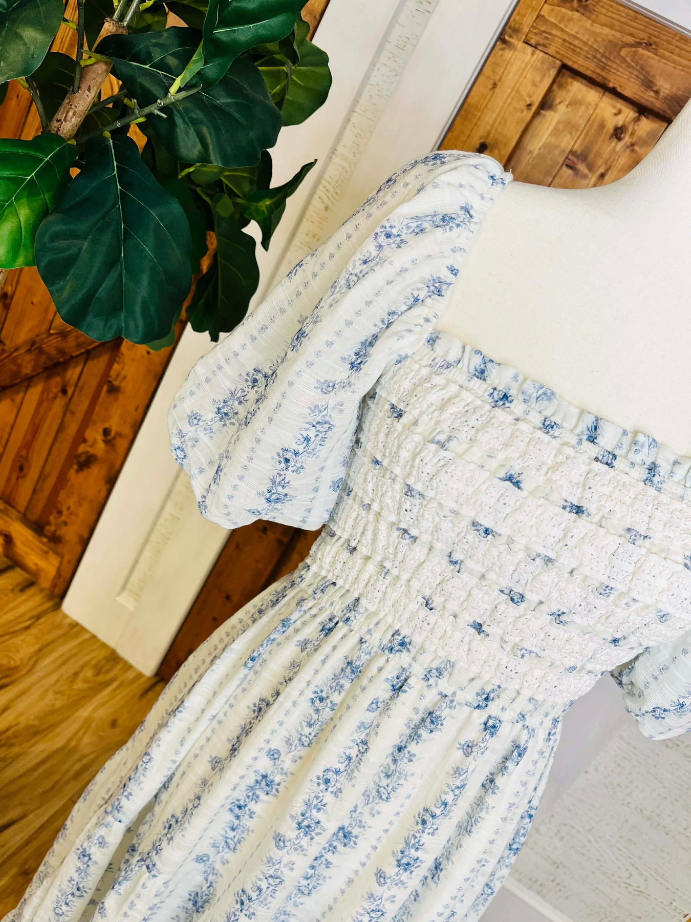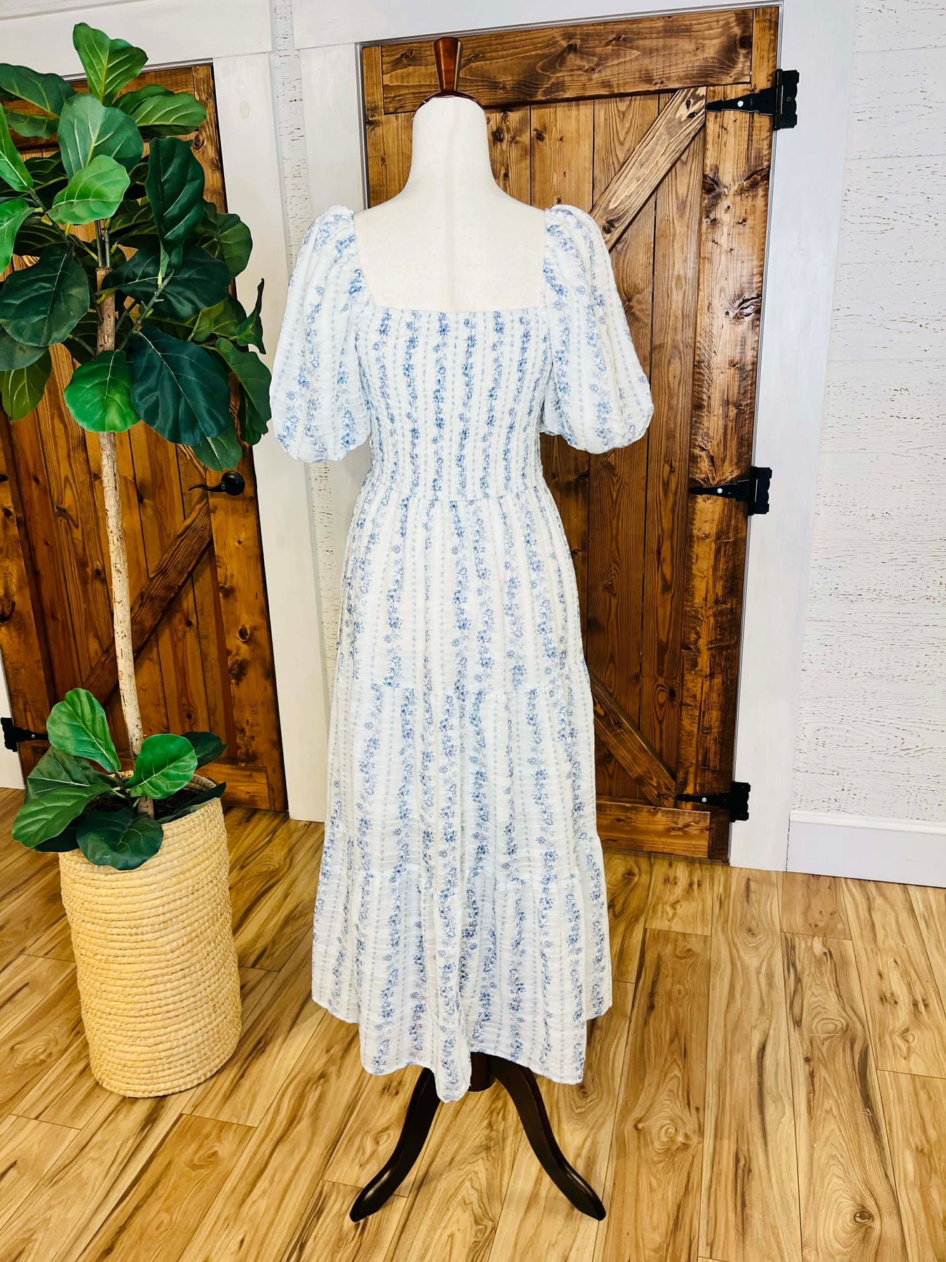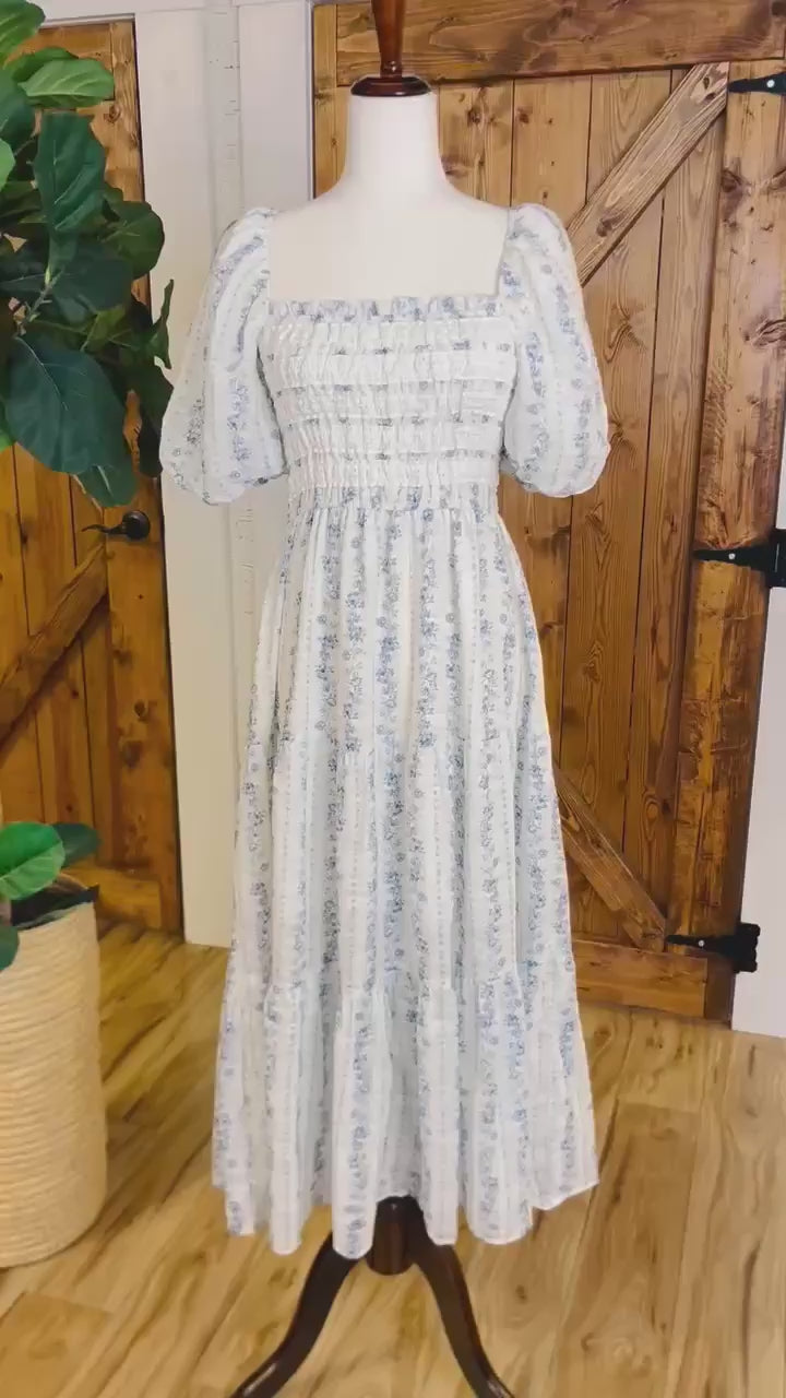 The Women’s Peach Love Smocked Lace Blue Floral Maxi Dress combines an elegant design with practical wearability. The smocked bodice ensures a comfortable fit, while the floral pattern and maxi length enhance versatility for various occasions. Ideal for summer events, this dress offers both style and ease of movement.