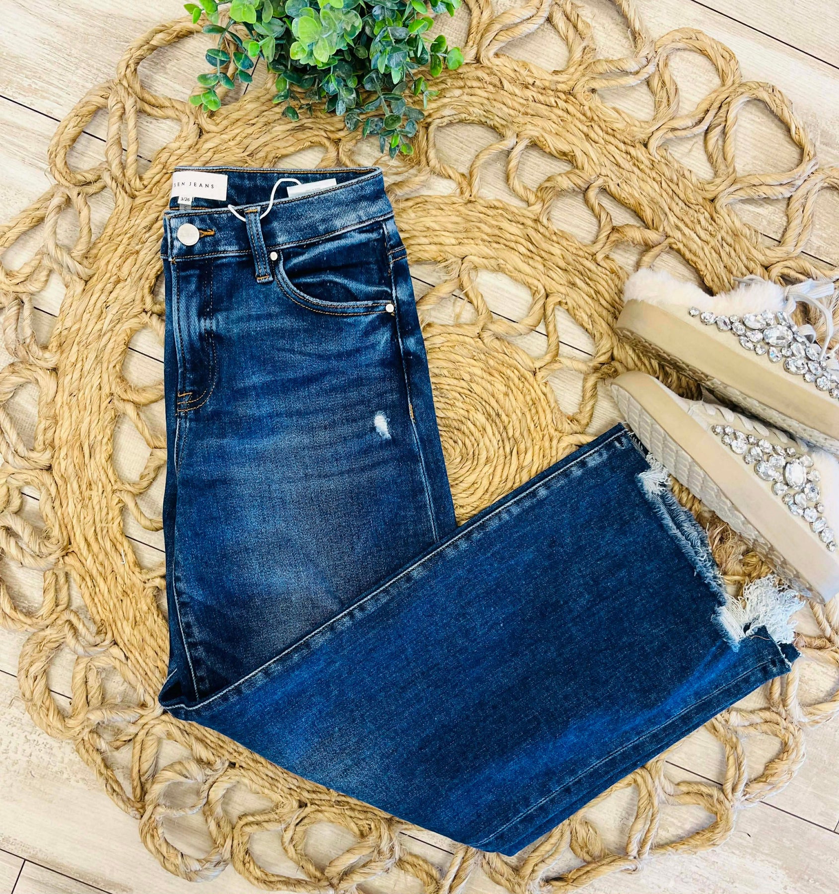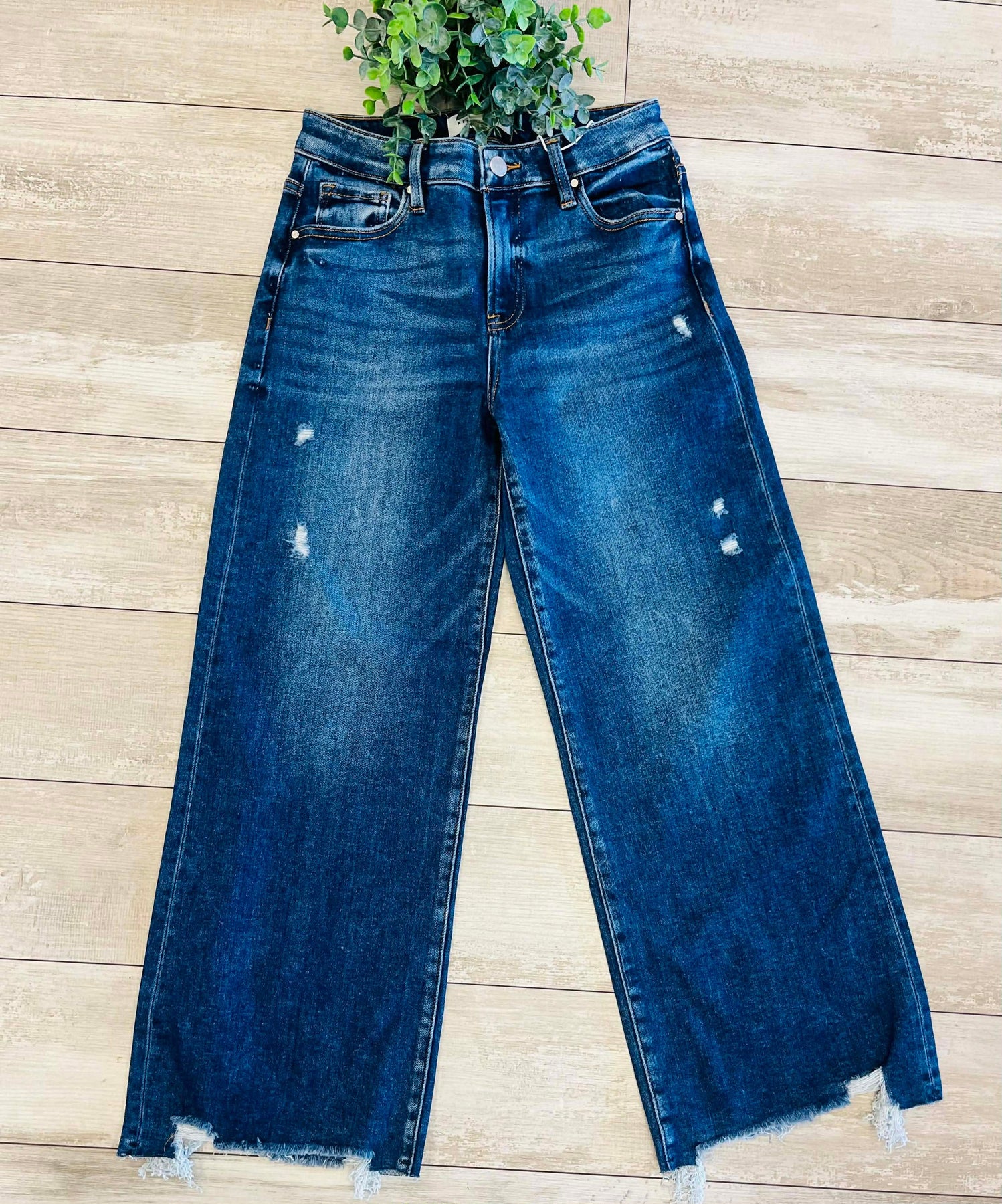 The Women’s Risen High Rise Crop Wide Leg Jeans Style #5878 feature a high-rise design that provides a comfortable fit while enhancing the waistline. The wide-leg cut allows for increased mobility and airflow, making these jeans an ideal choice for casual wear. Crafted from durable denim, they offer longevity without sacrificing style.
