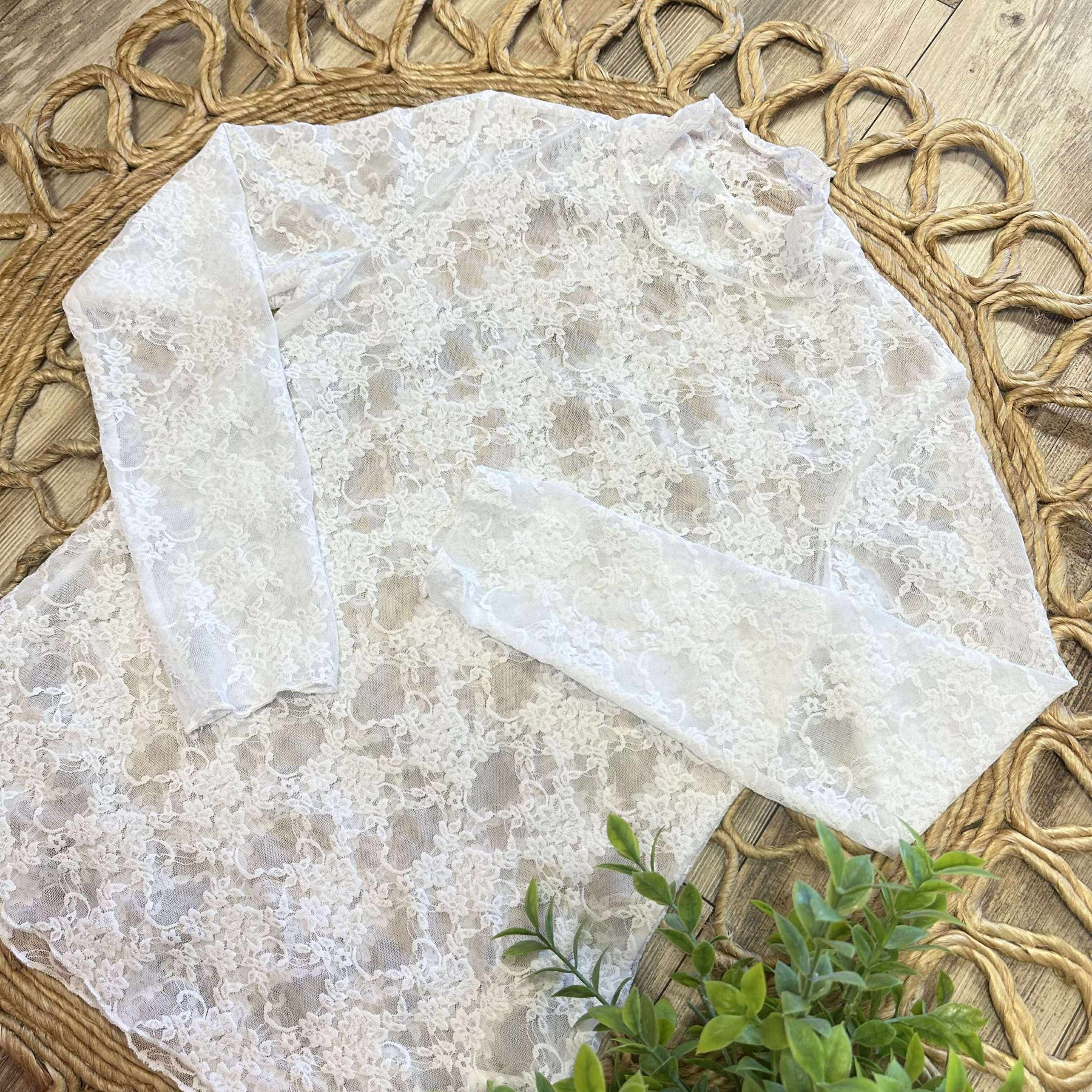 The Women’s White Floral Lace Sleeve Layering Top combines elegance and versatility. Crafted from breathable materials, it features floral lace sleeves that enhance comfort while allowing for air circulation, making it suitable for various occasions. This layering top is designed to complement a variety of outfits, providing a refined aesthetic.