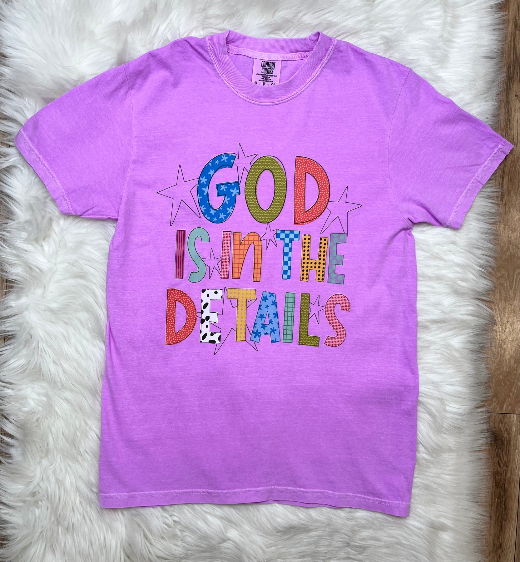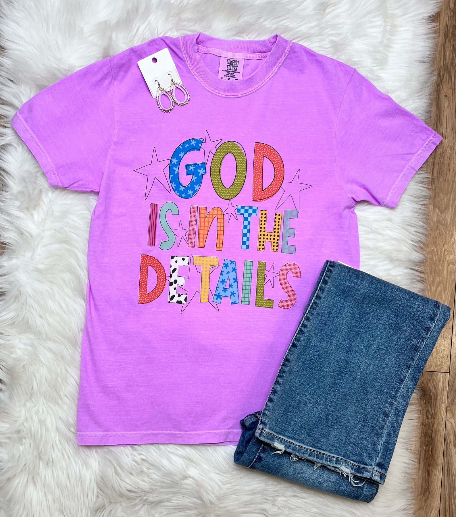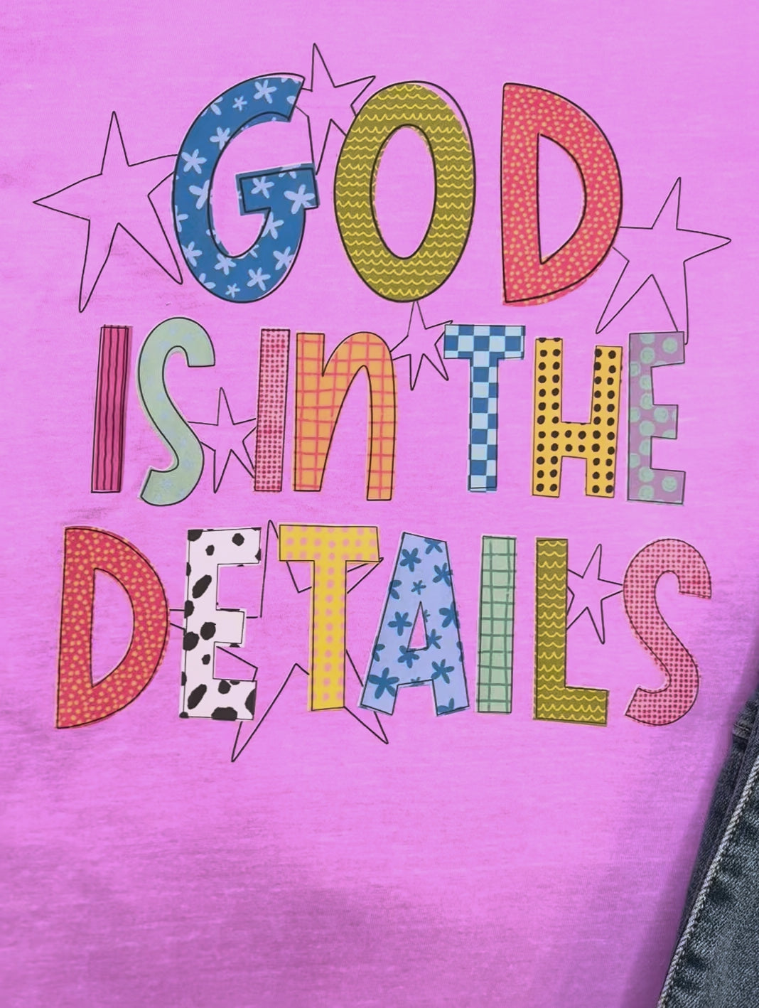 The Women's "God is in the Details" Graphic Tee features a unique design with mixed print letters, emphasizing a blend of artistic expression and meaningful messaging. Crafted from high-quality materials, this tee provides comfort and durability, making it suitable for various casual occasions.