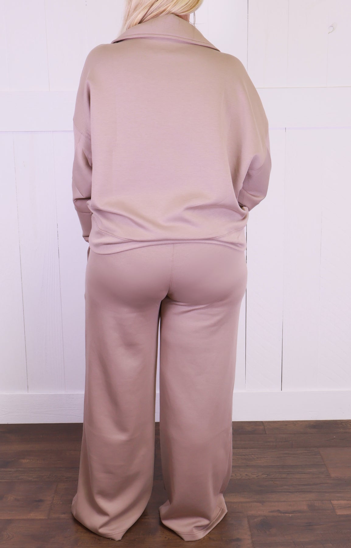 This Zenana Scuba Collared Pullover Pant Set in Light Brown is designed for comfort and ease. Made with quality scuba material, this set is perfect for lounging or running errands. Upgrade your wardrobe with this versatile and comfortable set.