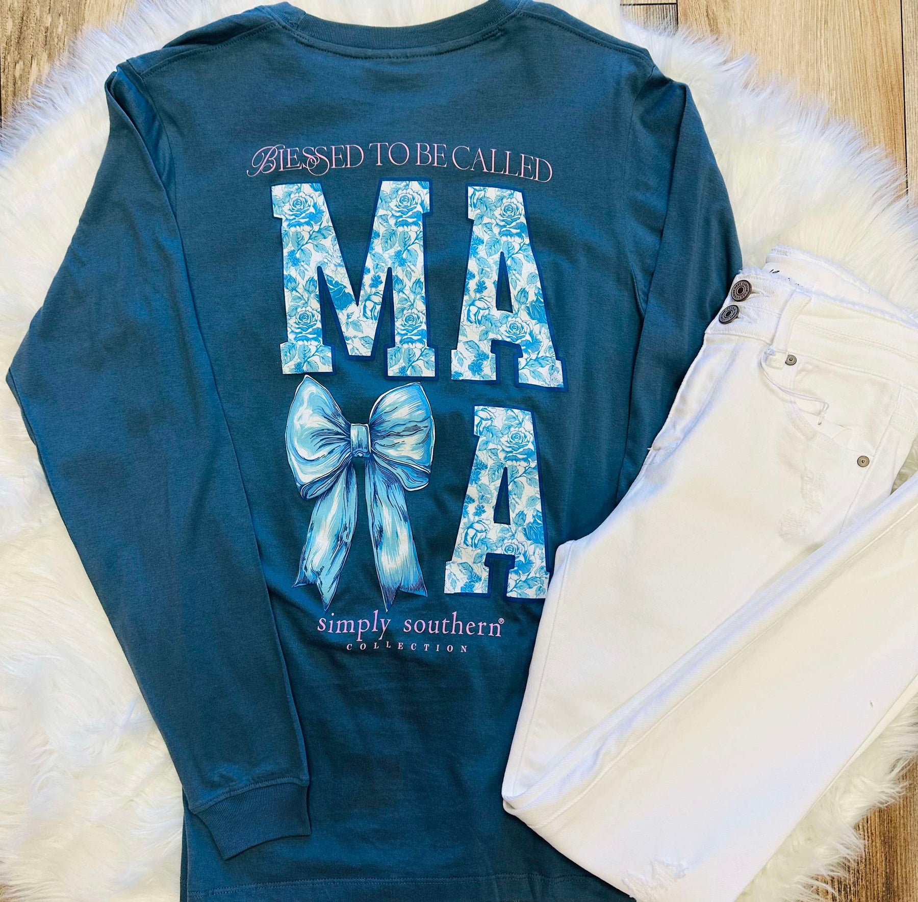 This women's Simply Southern "Mama" long sleeve tee is both stylish and comfortable. Its cute design adds a touch of fun to any outfit, making it the perfect choice for everyday wear. Crafted with high-quality materials, this tee is sure to make a statement while keeping you cozy.