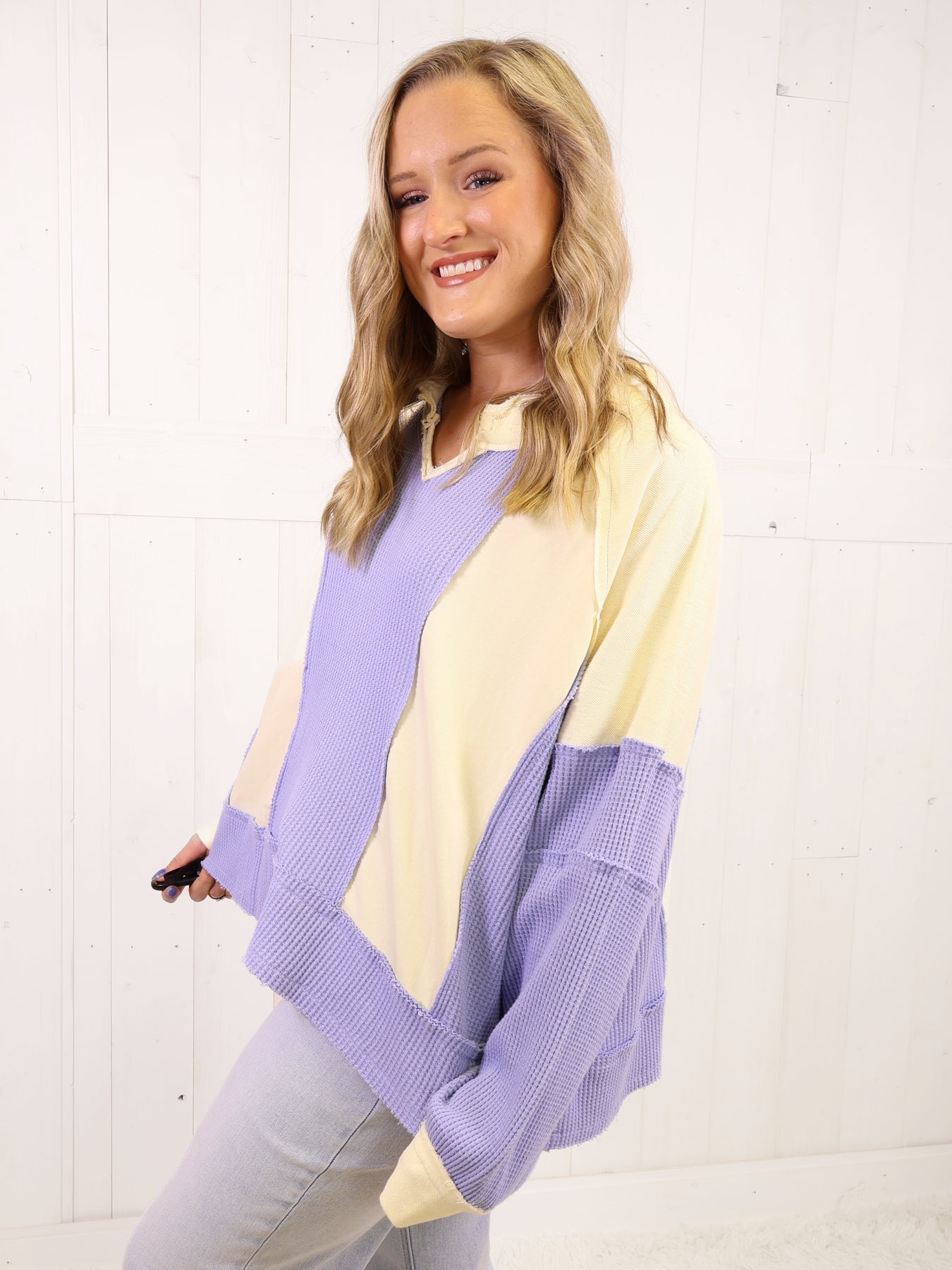 Expertly crafted with a mix of materials, this POL blue Mixed Media Oversized Top is a must-have in your wardrobe. The versatile black color pairs well with any outfit, while the oversized fit provides comfort and style. Made with high-quality fabric for long-lasting wear.