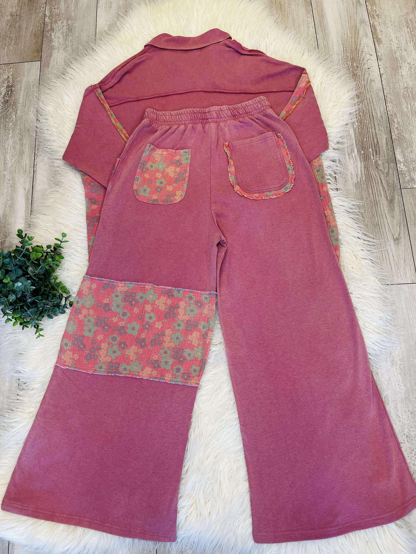 Effortlessly elevate your style with our Easel Mauve Pant Set. This beautifully designed set features delicate floral details and comes with both a top and bottom, making it perfect for any occasion. Experience the perfect blend of comfort and fashion with our versatile set.