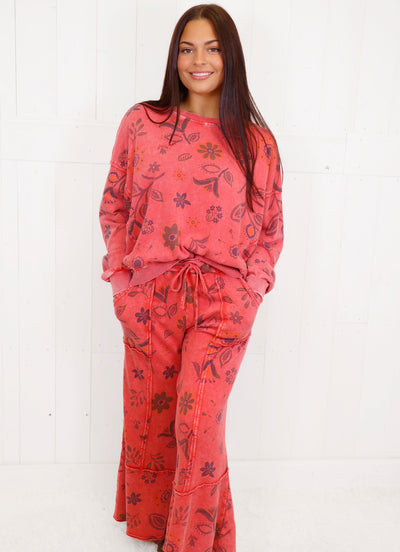 Zenana Ribbed Acid Wash Pants Set Dusty Teal