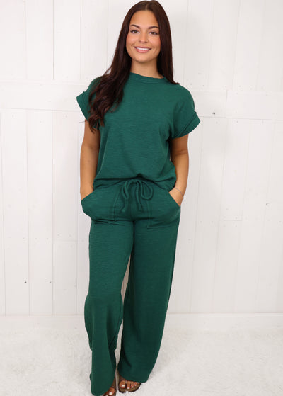 Zenana Slub Short Sleeve Pant Set Hunter Green