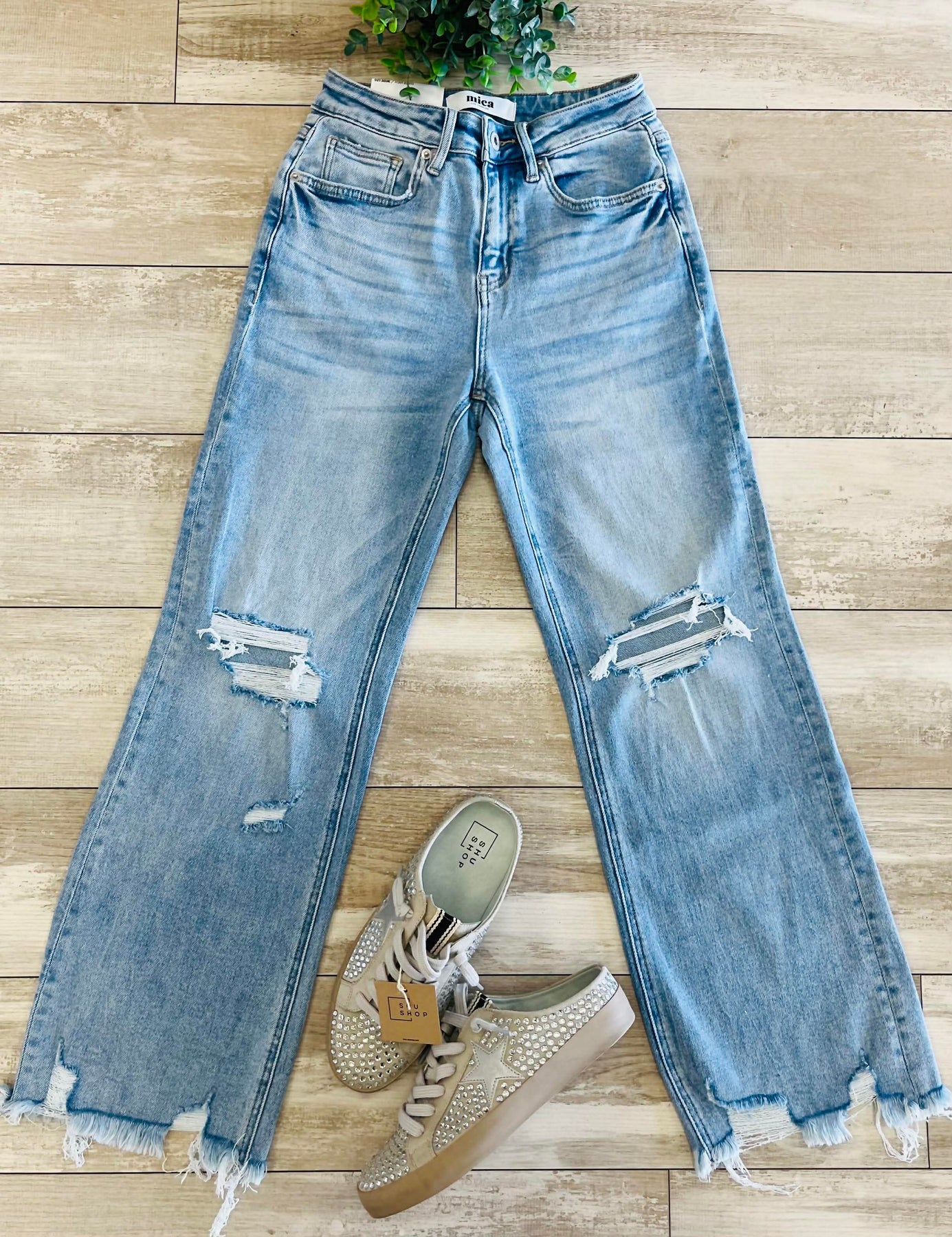 The Women’s Mica Denim Super High Rise Jeans in Ice Medium Wash feature a distressed design that combines style with comfort. Made from durable denim, these jeans provide a flattering silhouette and enhanced flexibility, making them suitable for everyday wear. The super high rise enhances coverage while offering a modern aesthetic.