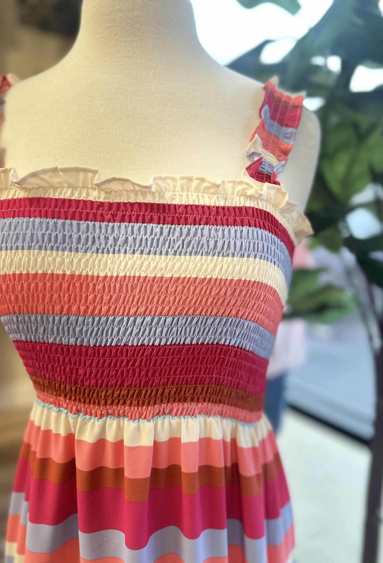 Expertly crafted for versatility and style, the Evermee Pink Multi Color Striped Maxi Dress is the perfect addition to your wardrobe. Featuring a combination of pink, blue, and brown stripes, this dress offers a timeless design that will elevate any look. Made with high-quality materials, this dress is both comfortable and chic.