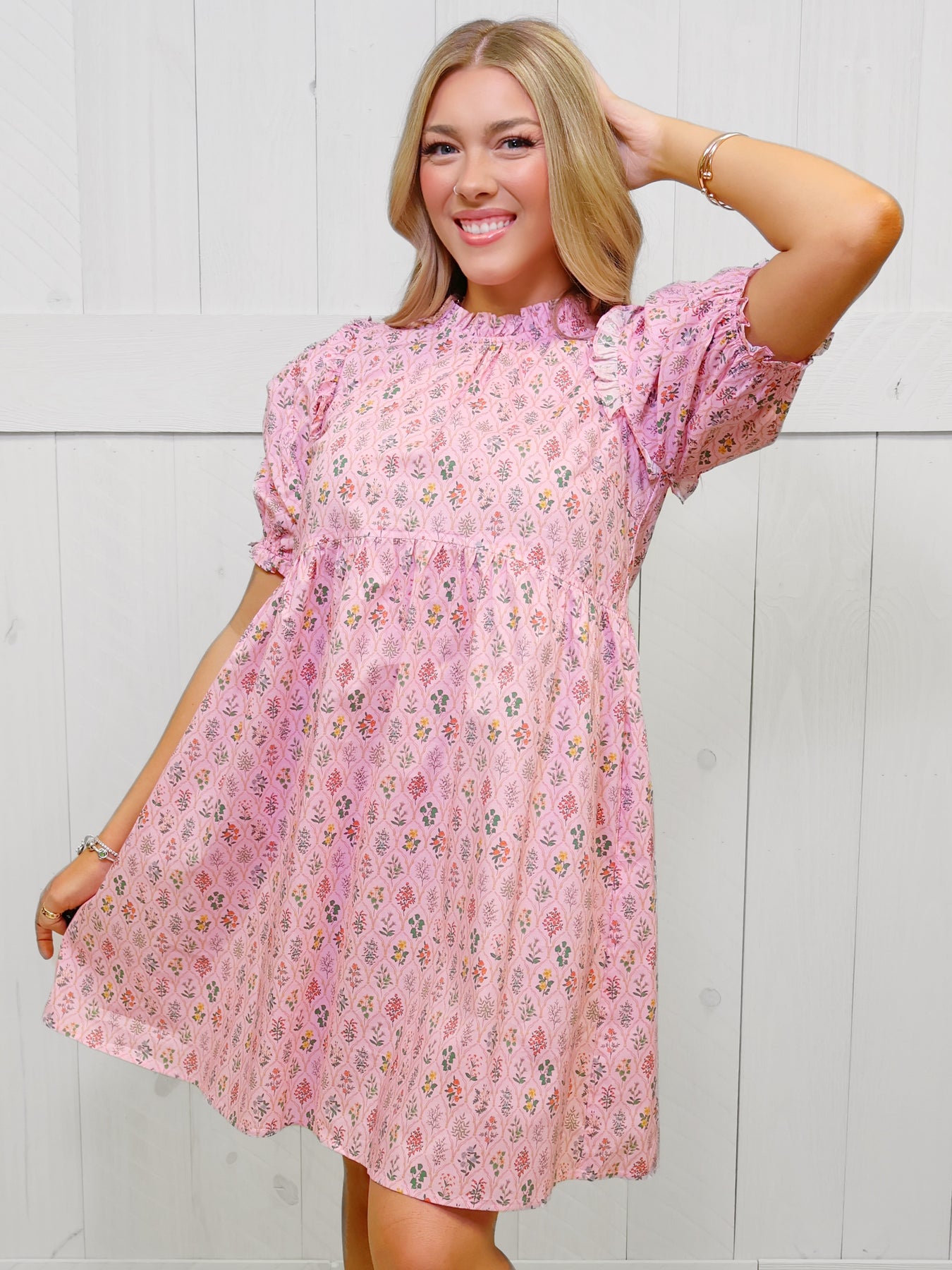 This GiGiO Women's Pink Ruffled High Neck Mini Dress features a chic and trendy ruffle design, adding a playful touch to your style. With a high neckline, it offers a sophisticated look while remaining comfortable and versatile. Perfect for any occasion, this dress is a must-have for your wardrobe.
