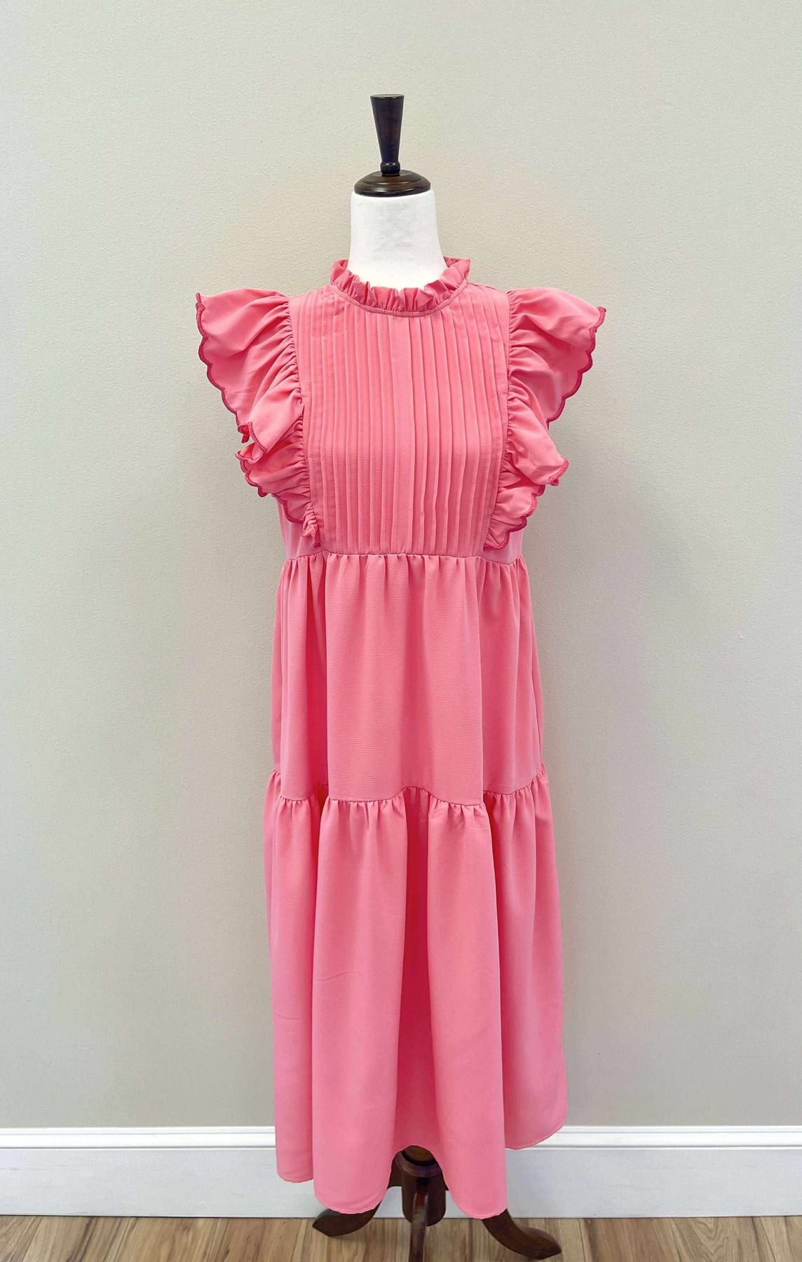 The Pale Pink Flutter Sleeve Maxi is perfect for any occasion with its elegant and versatile design. With its flowy and comfortable maxi length, it offers both style and comfort in one. The flutter sleeves add a touch of femininity while the pale pink color exudes a soft and delicate charm. Elevate your wardrobe with this must-have piece.