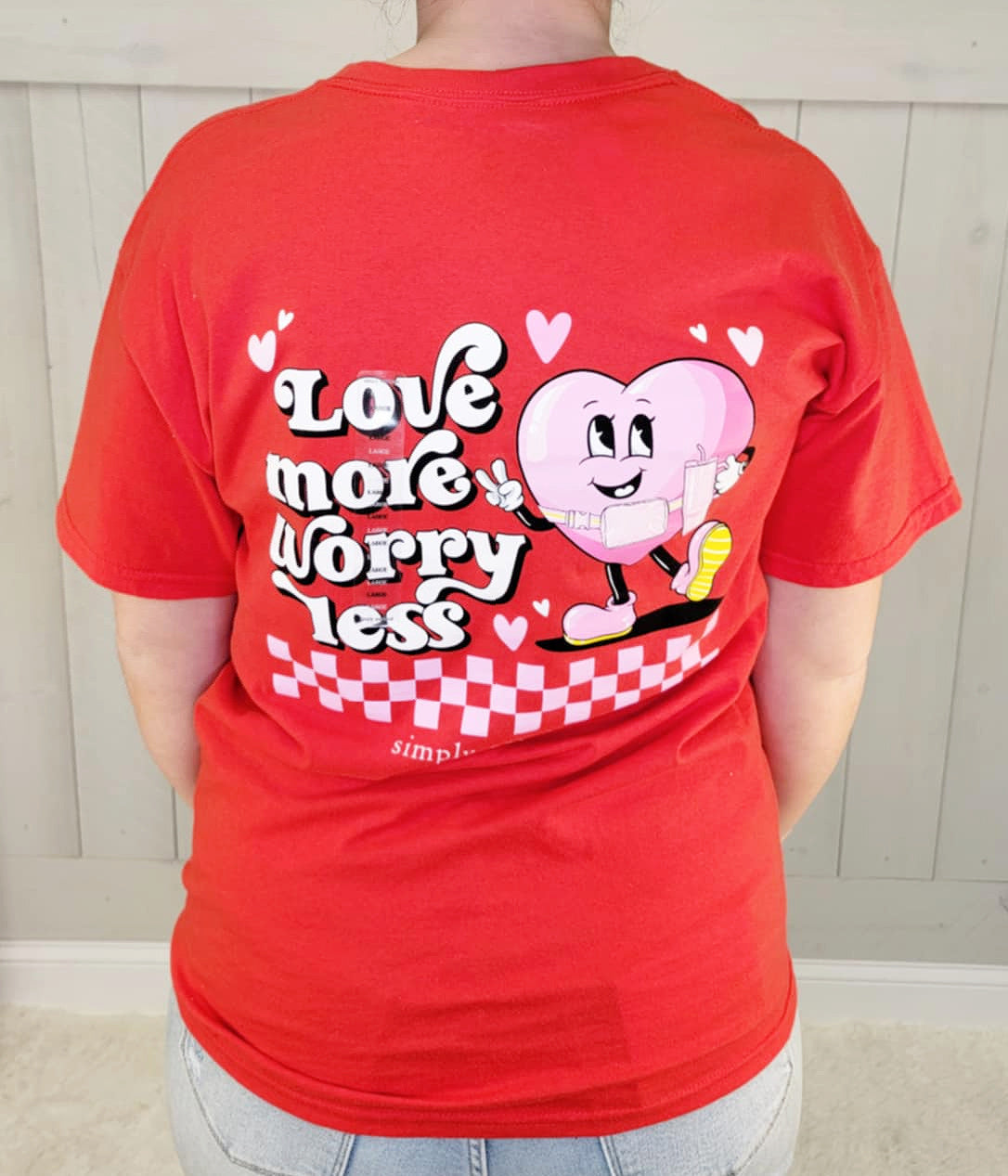 The Women's Love More, Worry Less Graphic Tee features a Valentine's Day-themed design that promotes a positive message. Made from soft, breathable fabric, this tee offers comfort for daily wear while encouraging a mindset focused on love and positivity. Ideal for casual outfits or gifting.