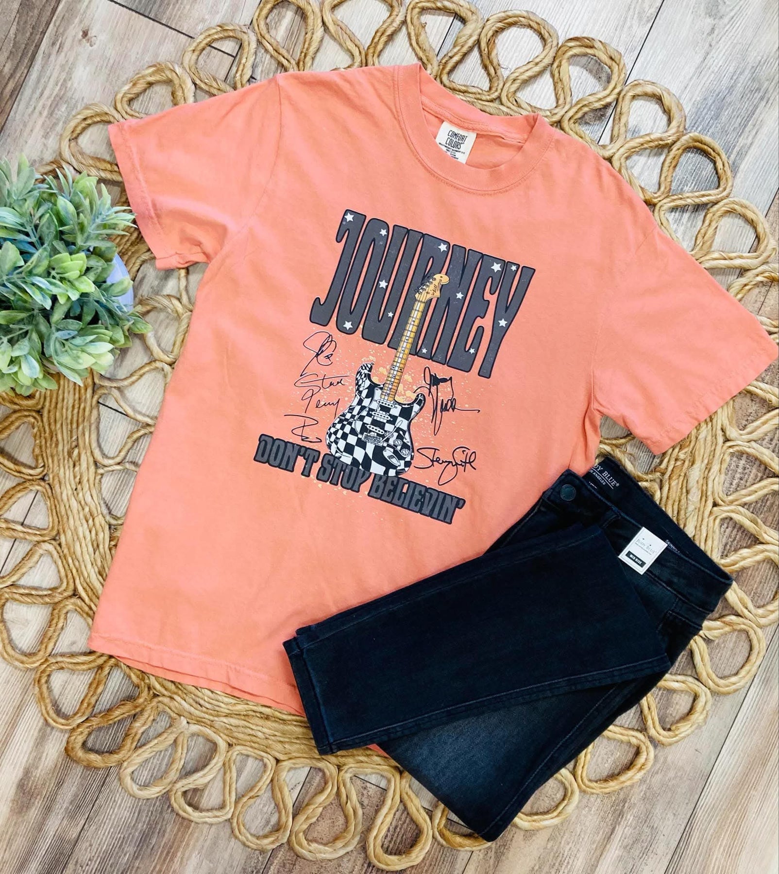 This Orange Journey Graphic Tee features a vibrant orange graphic, making it a bold and eye-catching addition to any wardrobe. Made from high-quality materials, it ensures both style and comfort. Perfect for adding a pop of color to any outfit.