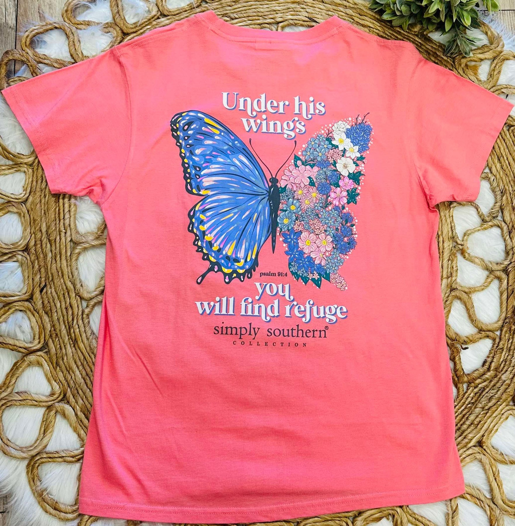Discover comfort and style with the Simply Southern “Under His Wings You Will Find Refuge” Tee. This cute tee features a unique design that will bring a touch of femininity to your wardrobe. Embrace the message of refuge and protection while looking effortlessly chic. Perfect for any casual occasion.
