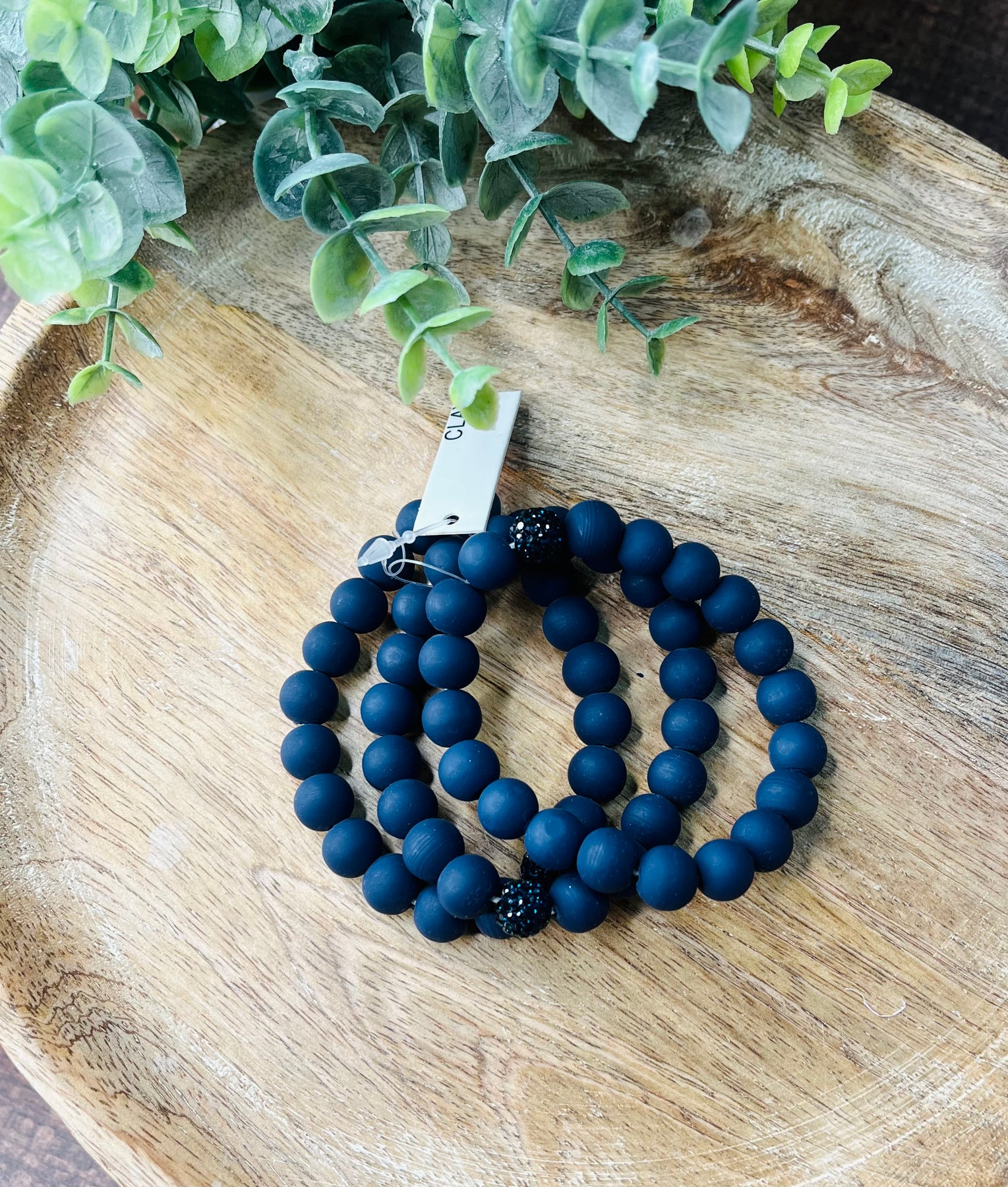 Enhance your style with our Clay Beaded with a Sparkle Accent Bracelet. Made with clay beads and a sparkle accent, it adds a touch of elegance to any outfit. Available in navy and army green, it's the perfect addition to your collection. AW