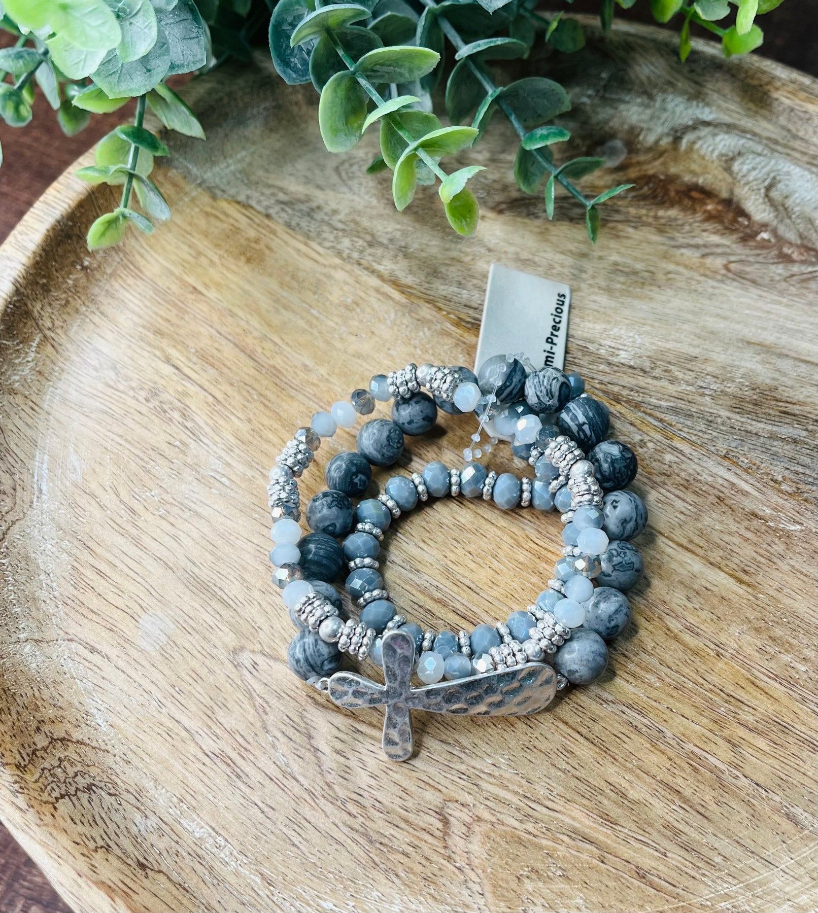Expertly crafted, this cross stacked bracelet is a stylish addition to any outfit. Featuring a unique design with beaded accents, this bracelet adds a touch of sophistication to your look. Its stackable design allows for versatility and customization, making it perfect for any occasion. AW