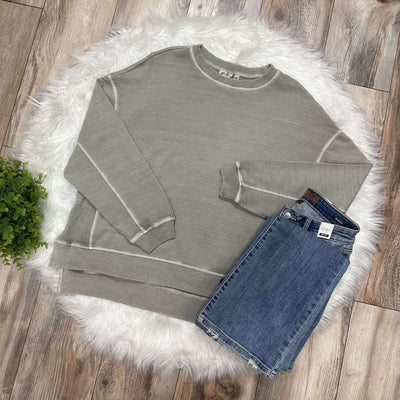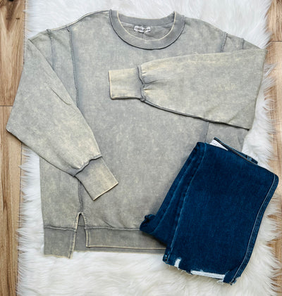 Zenana Basic Acid Wash Terry Exposed Seam Sweater Pullover Sleet Grey