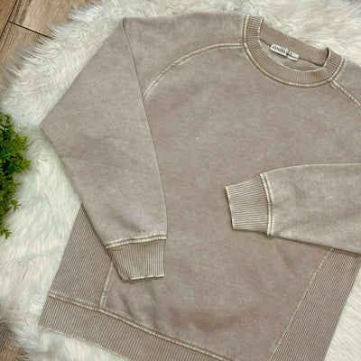 Zenana Basic Acid Wash Fleece Pullover Sweater with Side Ribbed Ash Mocha