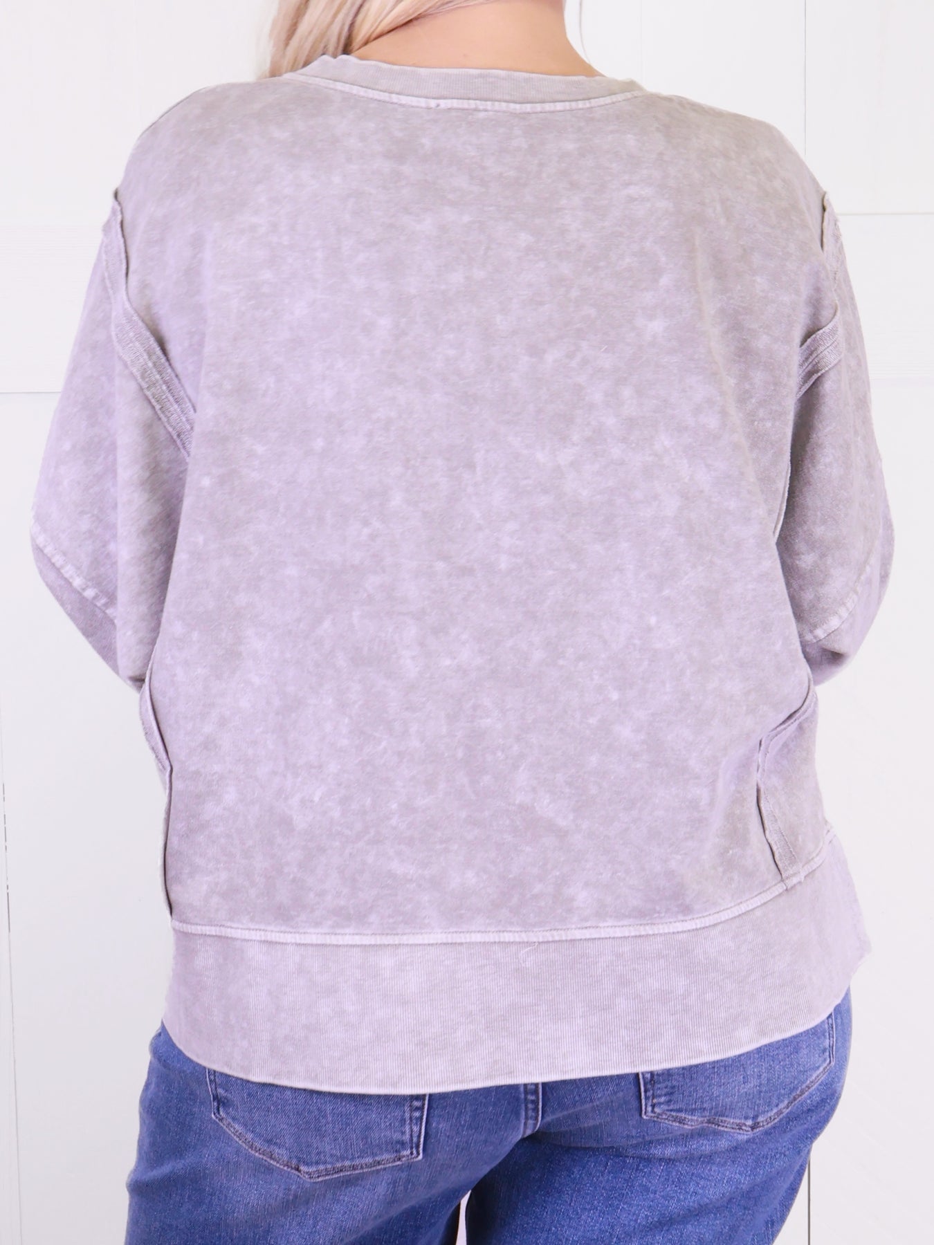 Women’s Basic Acid Washed Drop Shoulder Grey Top