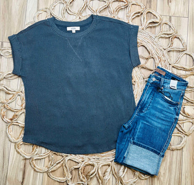 Cuff Sleeve Ribbed Top - Ash Mocha