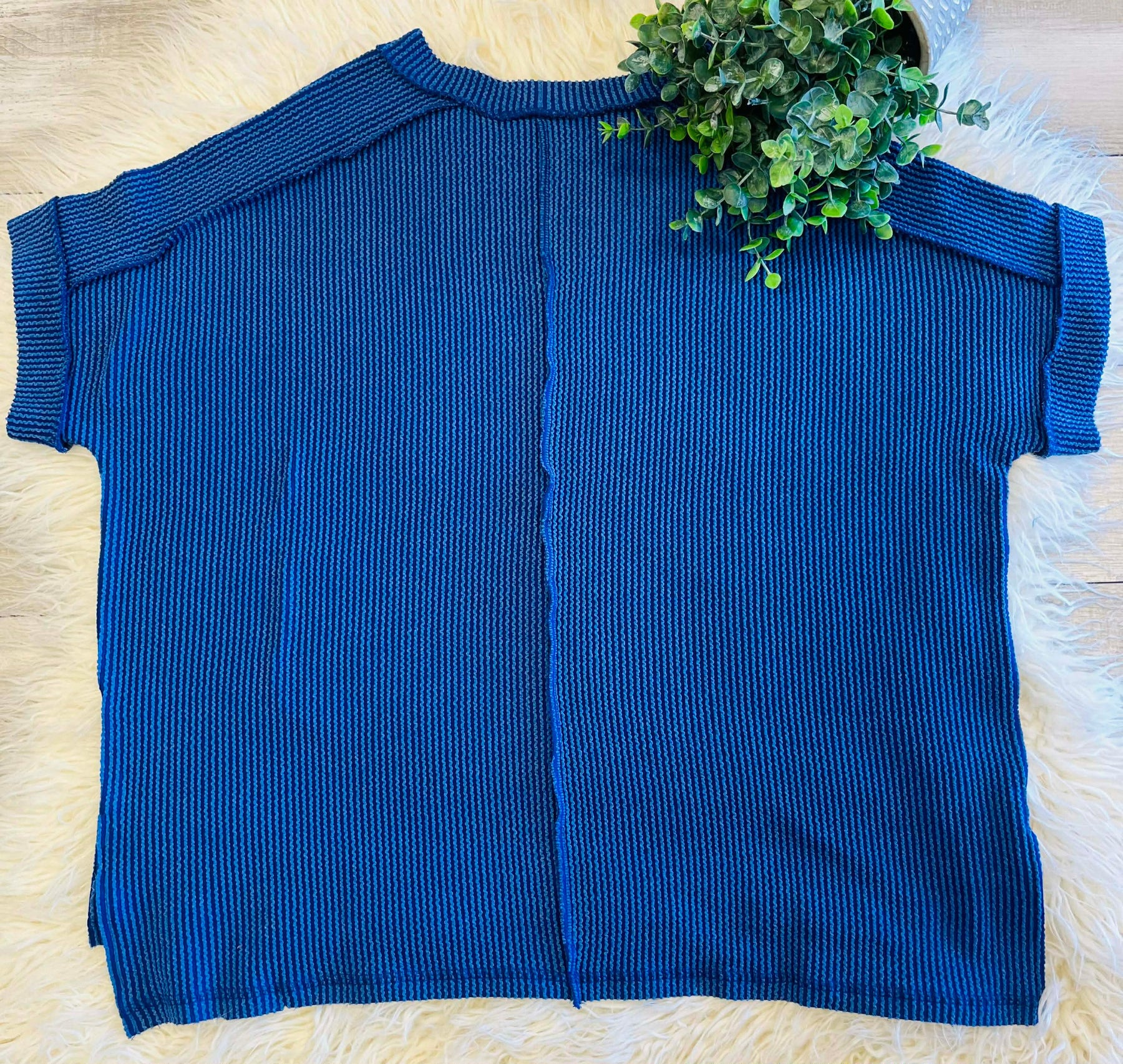 Women’s Ribbed Cuff Sleeve Basic Top Royal Blue