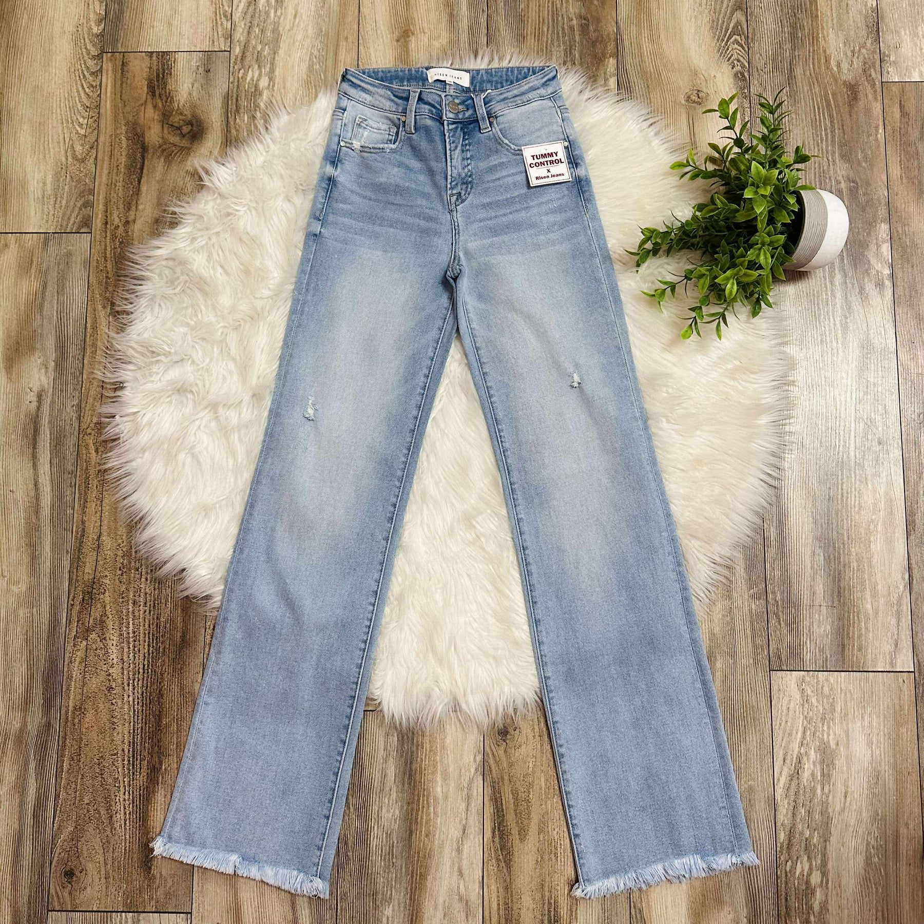 The Women’s Risen Tummy Control High Rise Long Straight Jeans offer a high-rise design that enhances the waistline, providing support and comfort. The straight leg silhouette ensures versatility for various body types and occasions, while the durable fabric composition guarantees longevity, making these jeans a reliable addition to any wardrobe.