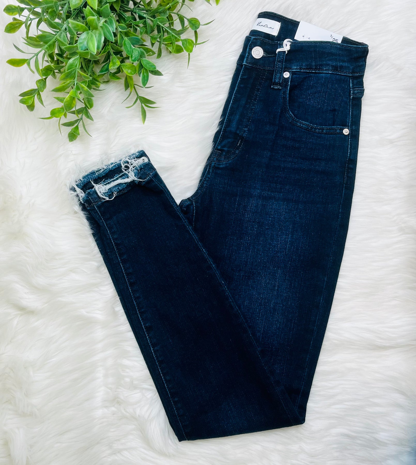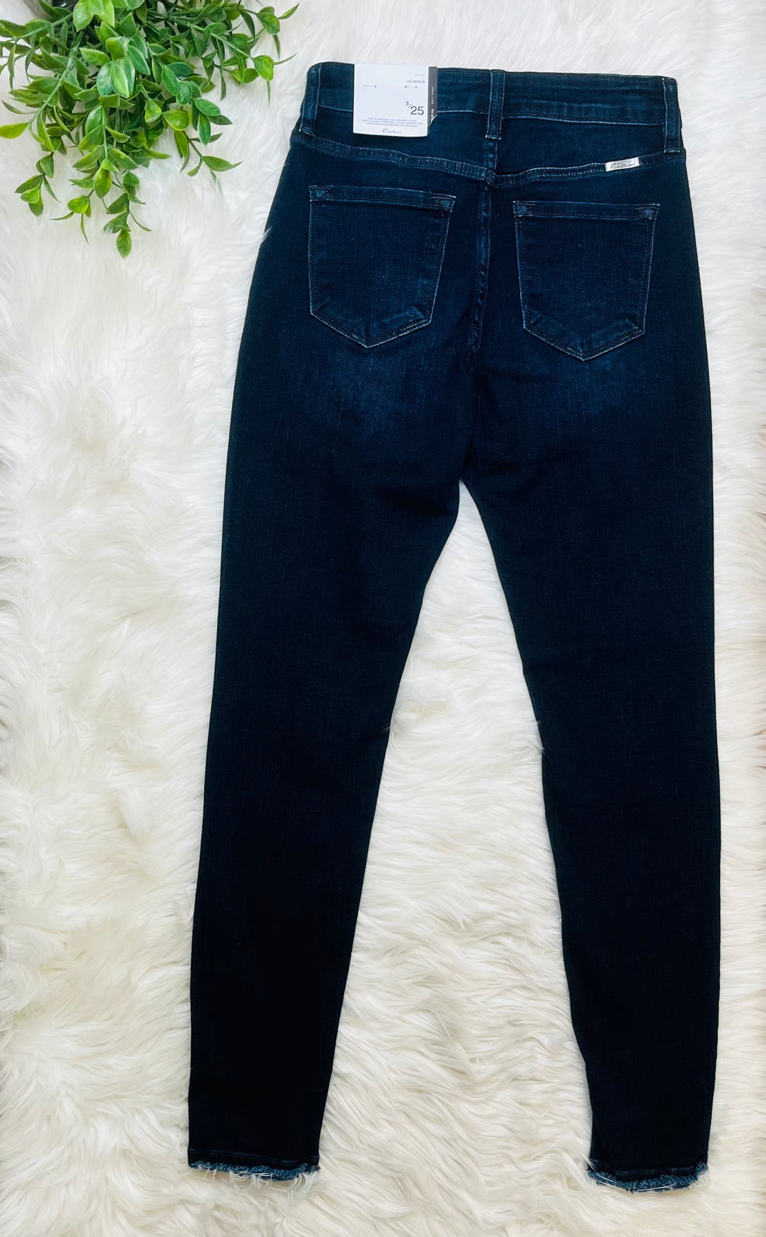 The Kancan Dark Wash High Rise Jeans 20010 feature a smooth, hole-free design, offering a polished look suitable for various occasions. The high-rise fit provides enhanced support and comfort, promoting a flattering silhouette. Made from durable materials, these jeans ensure long-lasting wear while maintaining their shape and color.