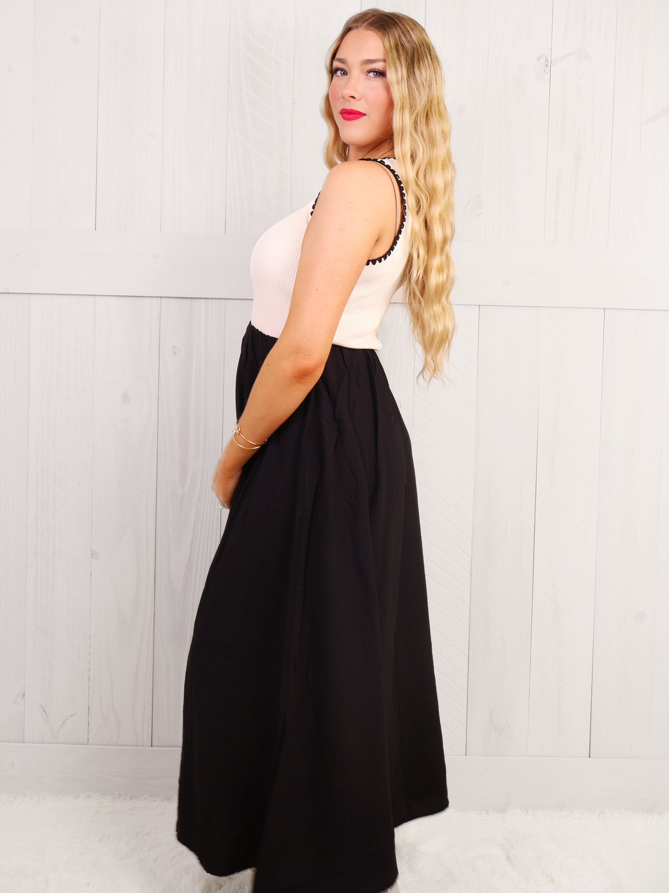 Discover the ultimate blend of style and comfort with our Black Scalloped Trim Tank Dress. The sleek black design and delicate scallop trim create a chic and timeless look, while the tank top style offers a relaxed fit for all-day wear. Elevate your wardrobe with this must-have dress.