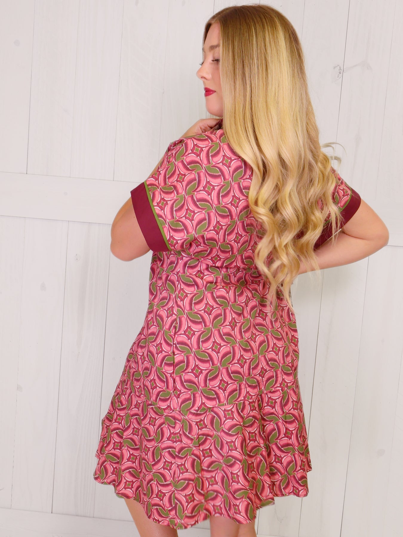 Indulge in fashion with the Entro Curvy Wine Floral Trim Dress! Made with high-quality materials, this dress is designed to flatter your curves while providing comfort. The beautiful floral trim adds a touch of elegance to this classic dress. Perfect for any occasion, this dress will make you look and feel your best.