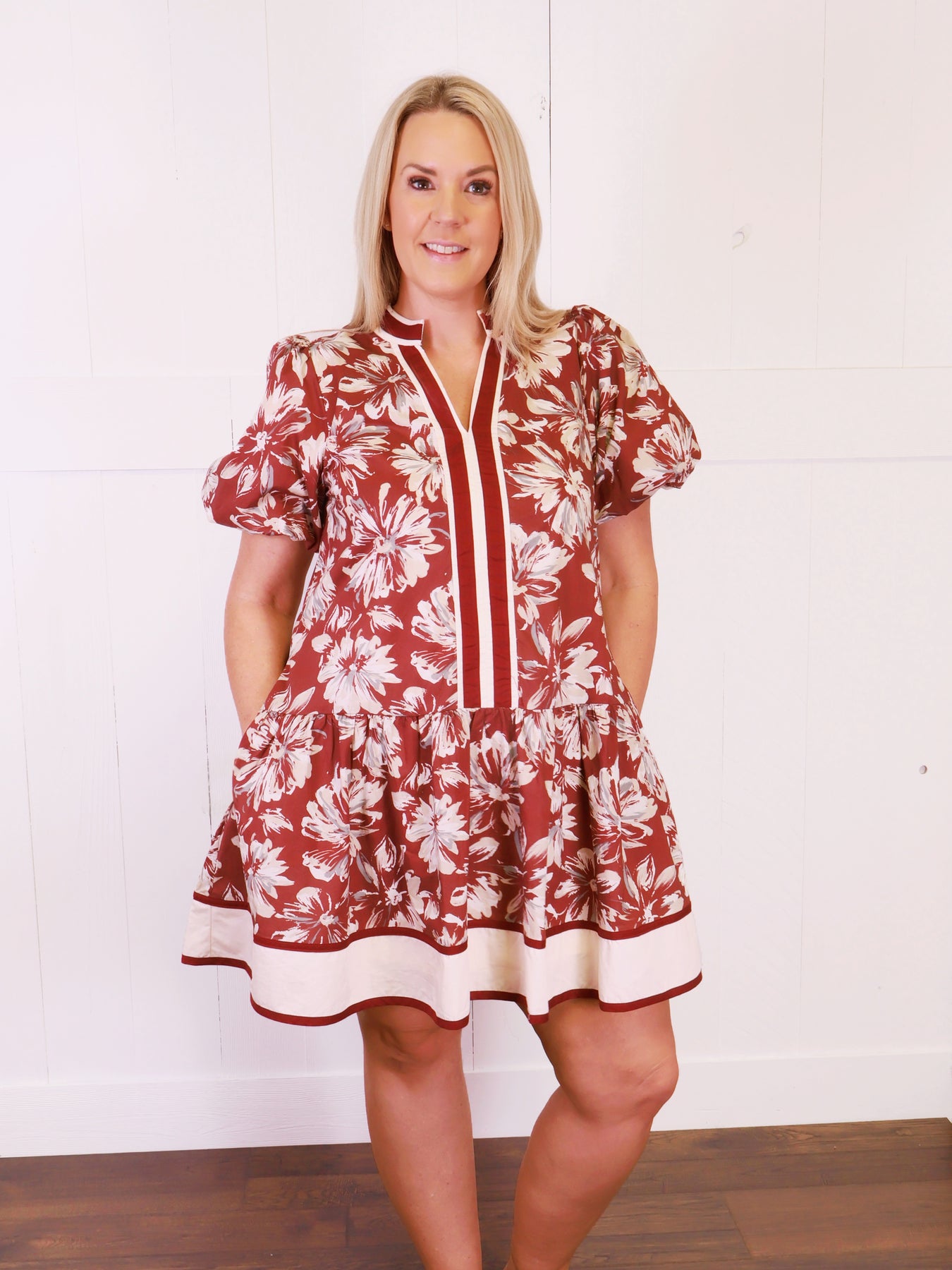 Women’s Umgee Split Neck Wine Floral Dress FW